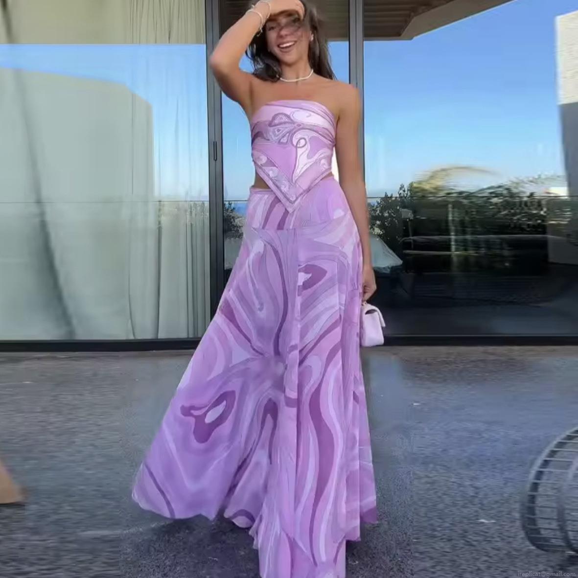 • Women's 3 Piece Set Purple Pink Marble Print Tube Top Cape And Maxi Skirt Sexy Vacation Beachwear Polyester Blend Streetwear Suit For Women