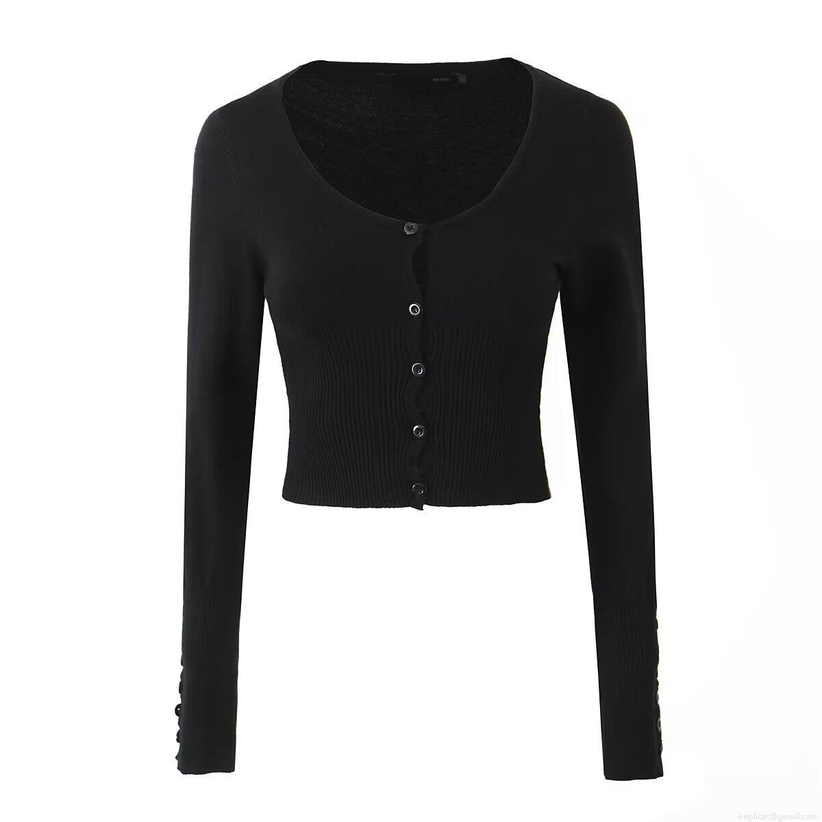 Solid Color, Single-breasted, Ribbed Knit, Openwork Decoration, Wavy Hem