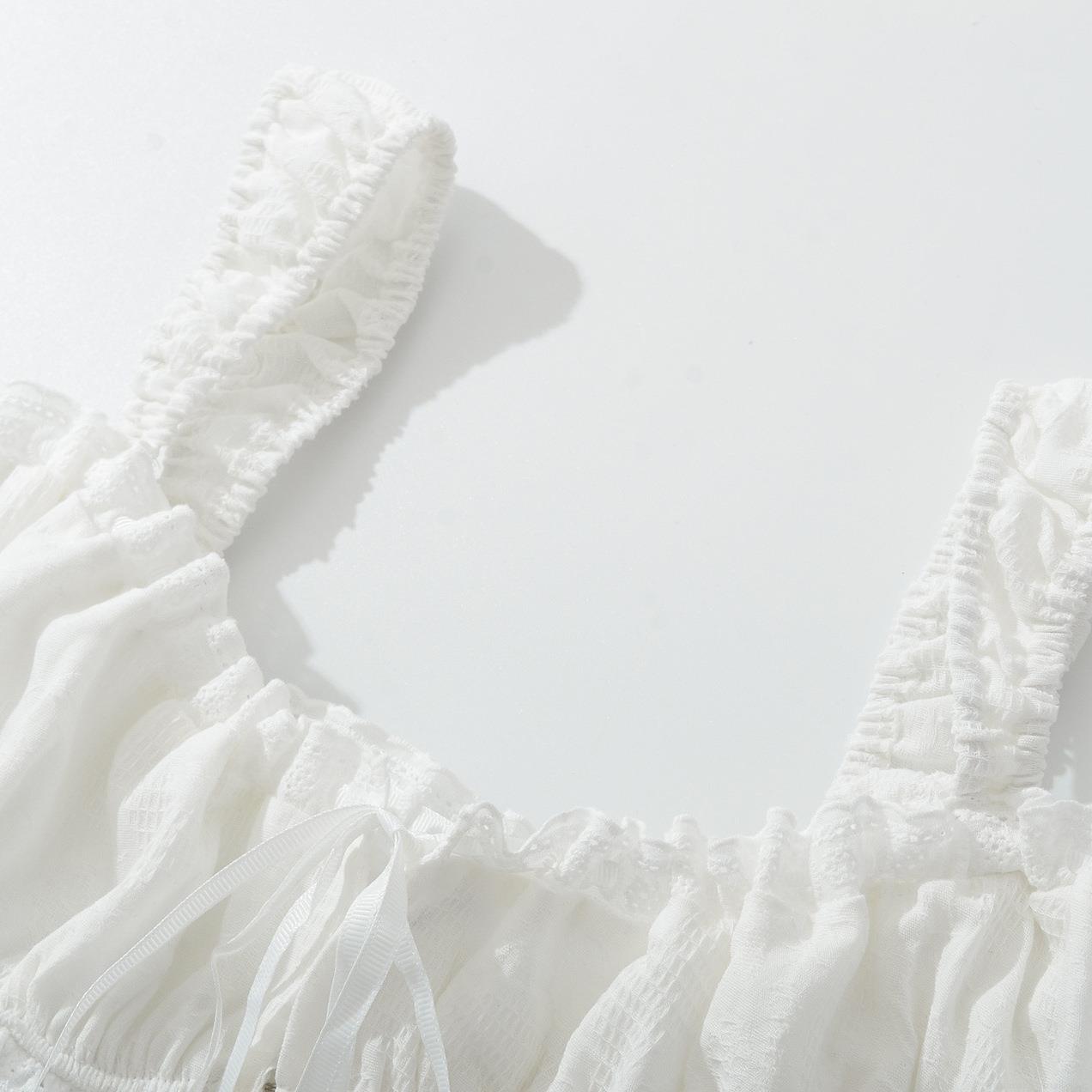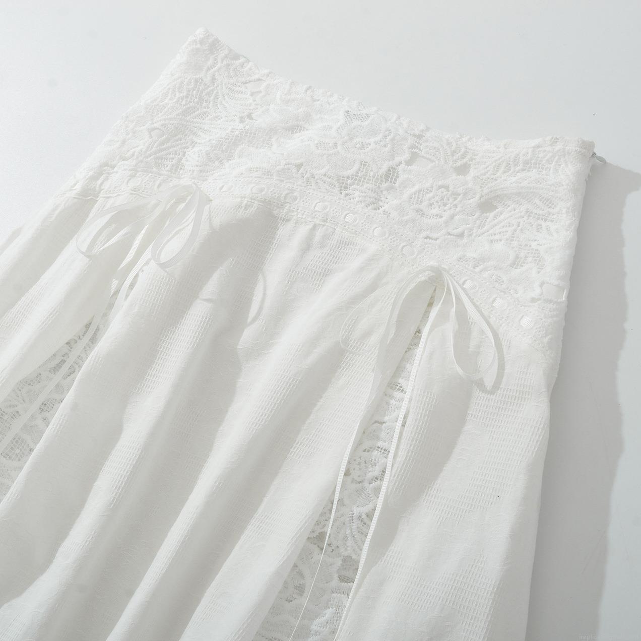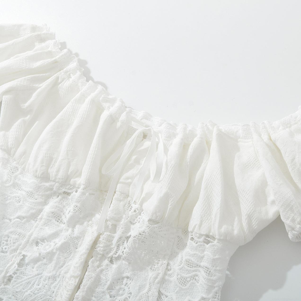 • Women's 3-Piece Skirt Set Elegant White Cotton Lace Patchwork Puff Sleeve T-Shirt Camisole And High Waist Mid-Length Skirt For Casual Party Sweet Style