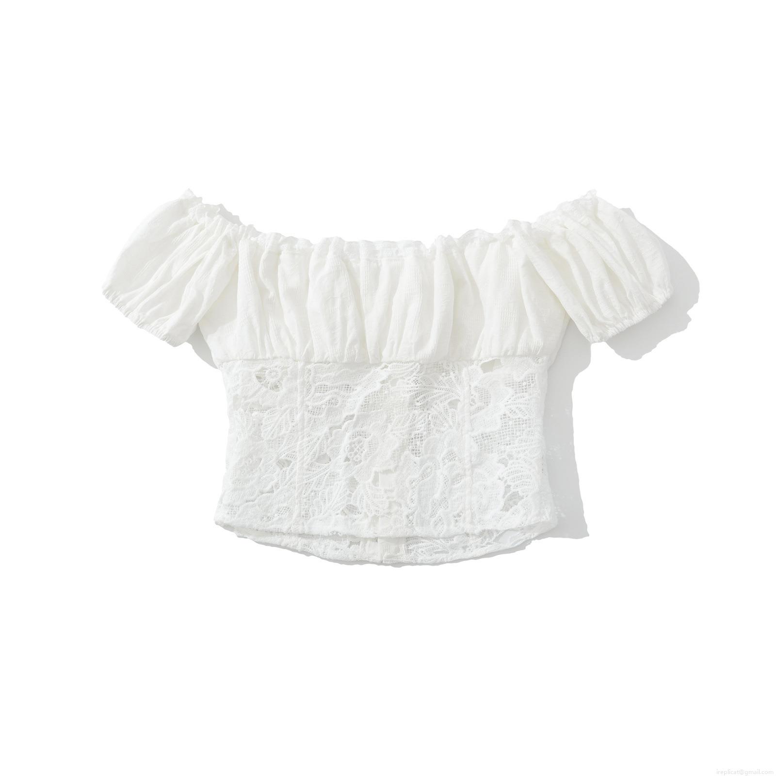 Solid Color, Wood Ear Edge, Lace, Lace Patchwork, Puff Sleeves, Floral Lace