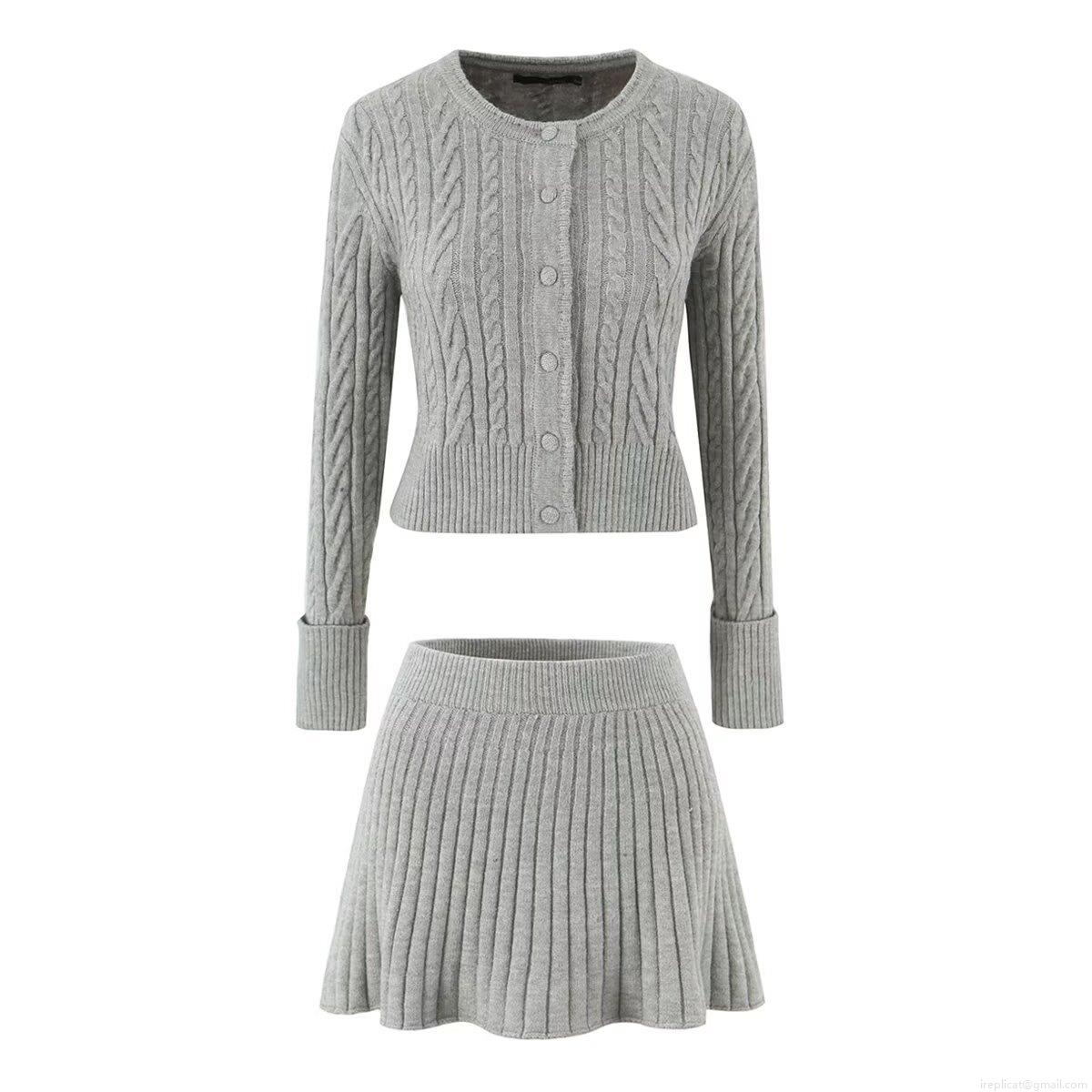 • Women's Cable Knit Cardigan And Pleated Mini Skirt 2 Piece Set Knitted Long Sleeve Round Neck Button Down Casual Streetwear Outfit For Autumn Winter