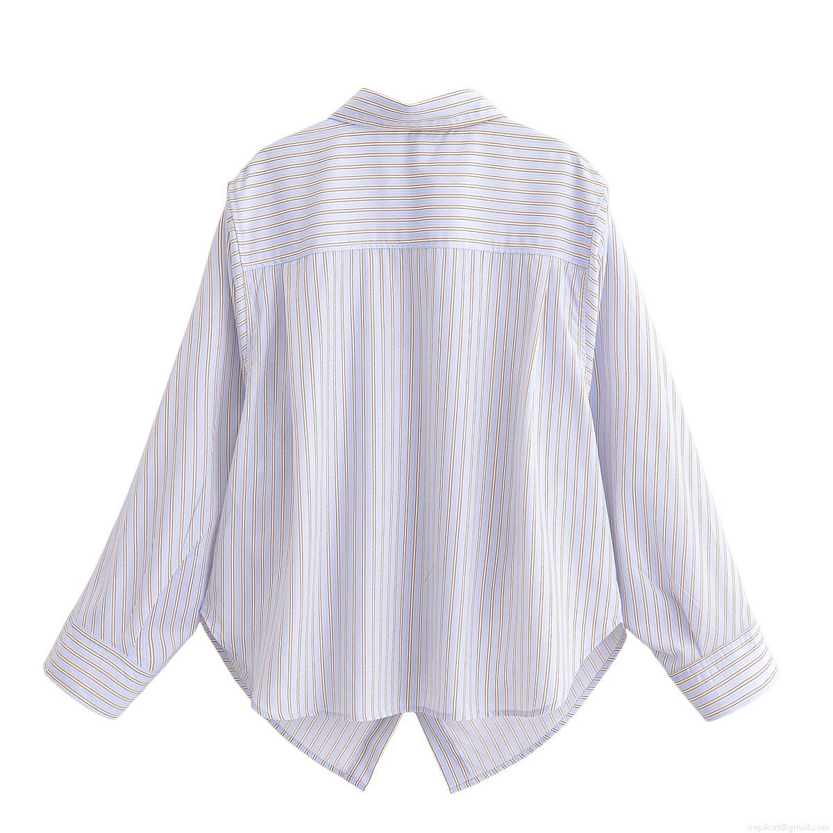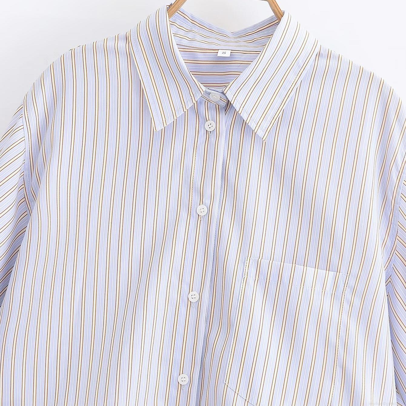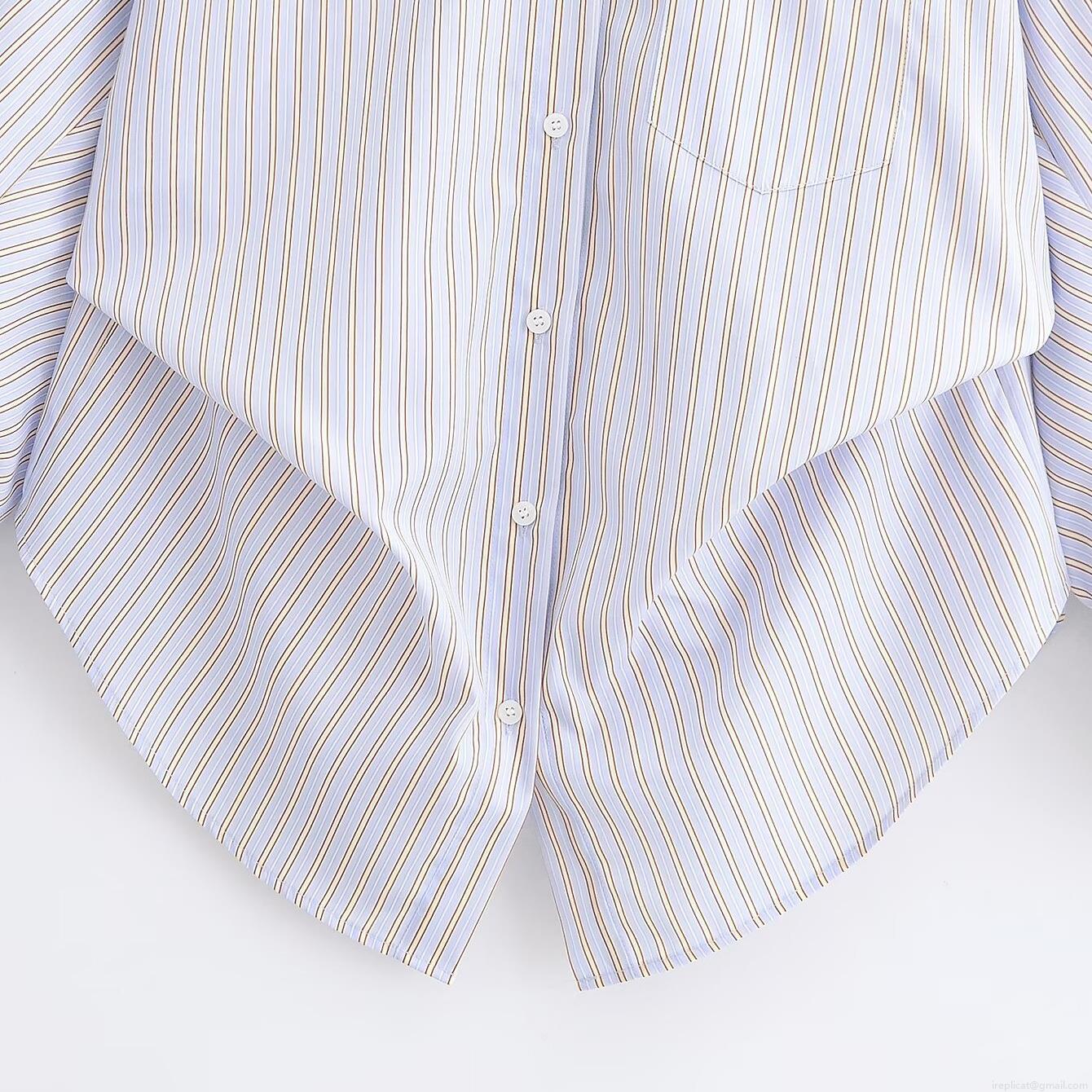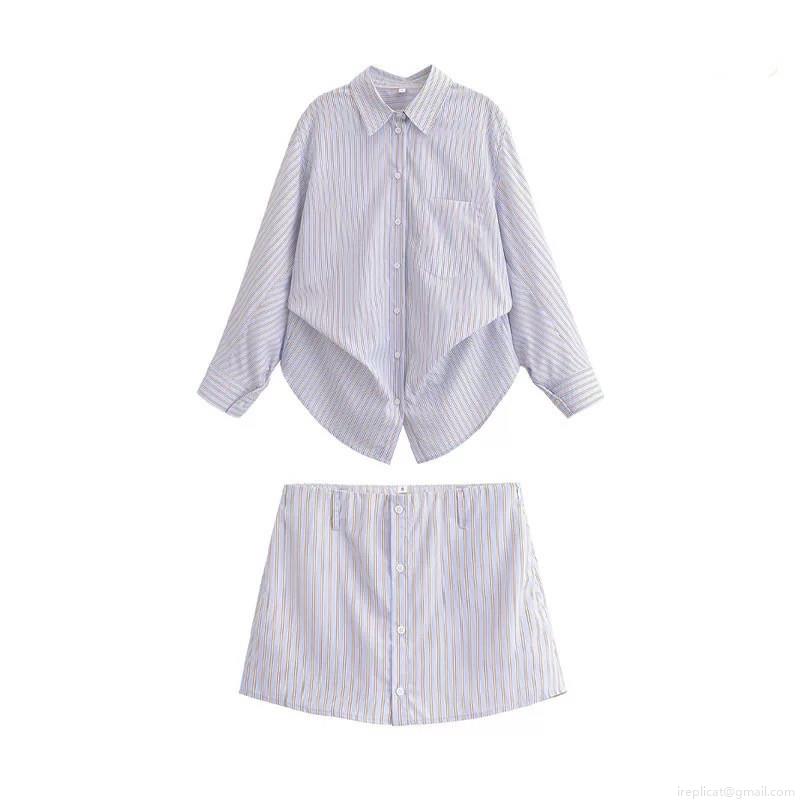 • Women's Casual Blue Striped Two Piece Set Long Sleeve Lapel Shirt With Chest Pocket And High Waist Button Front Culottes A-Line Mini Skirt Shorts Set For Daily Wear