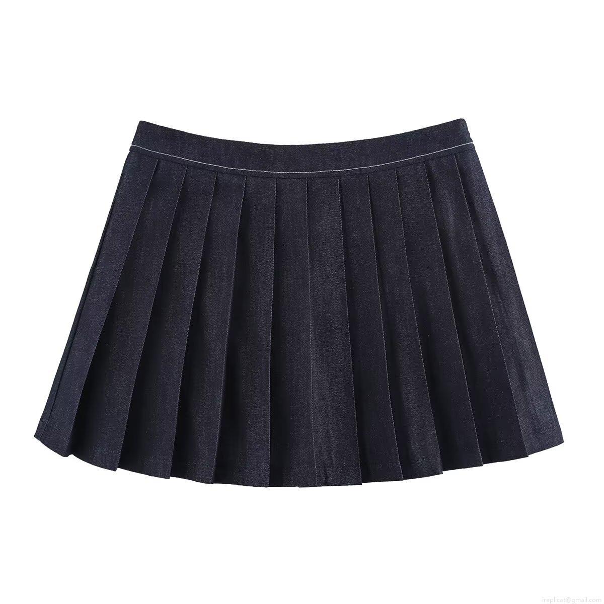 Solid Color, Contrasting Stitching, Zipper Decoration, Contrast With Clear Lines, Pleated Design, Denim