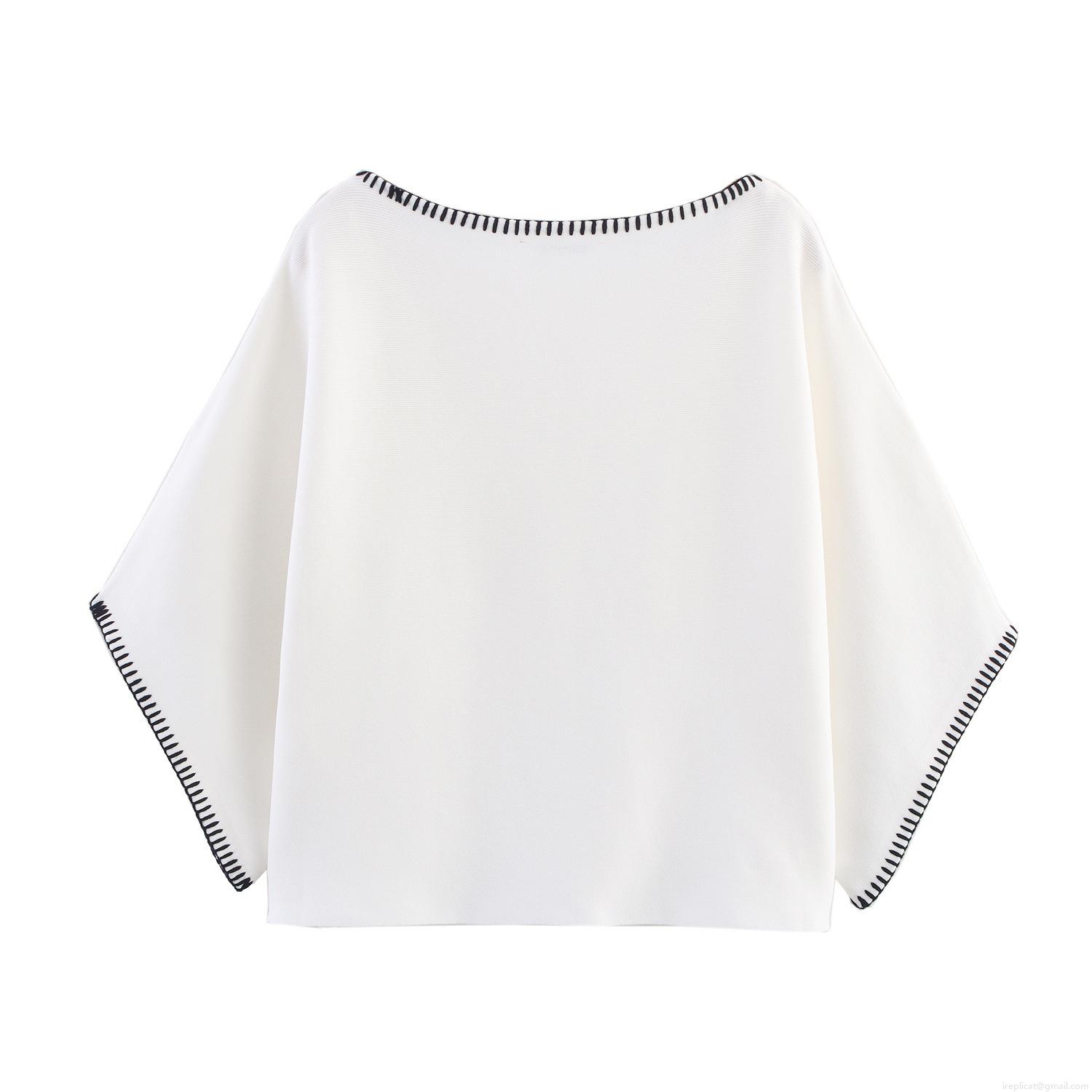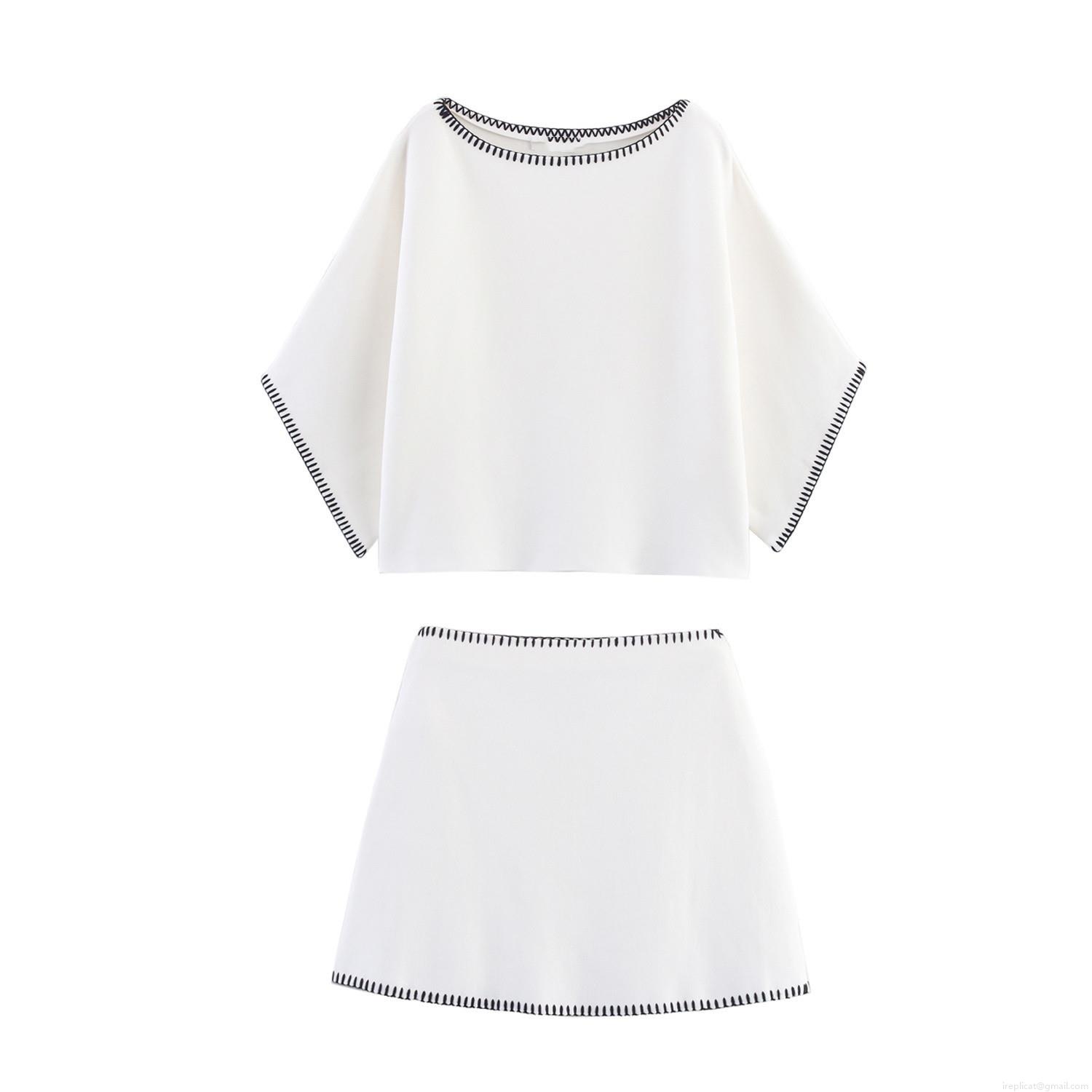 • Women's Casual Knit Two-Piece Set Contrast Stitching Short Sleeve Boat Neck Top And A-Line Mini Skirt Summer Fashion Outfit Elegant Minimalist Style