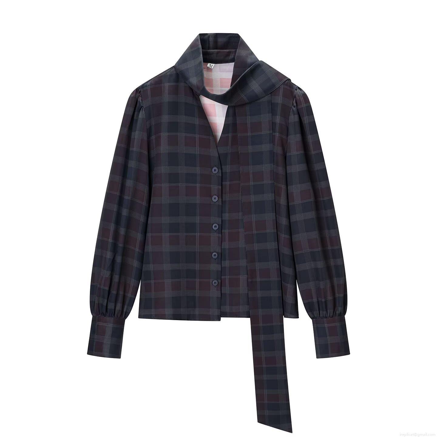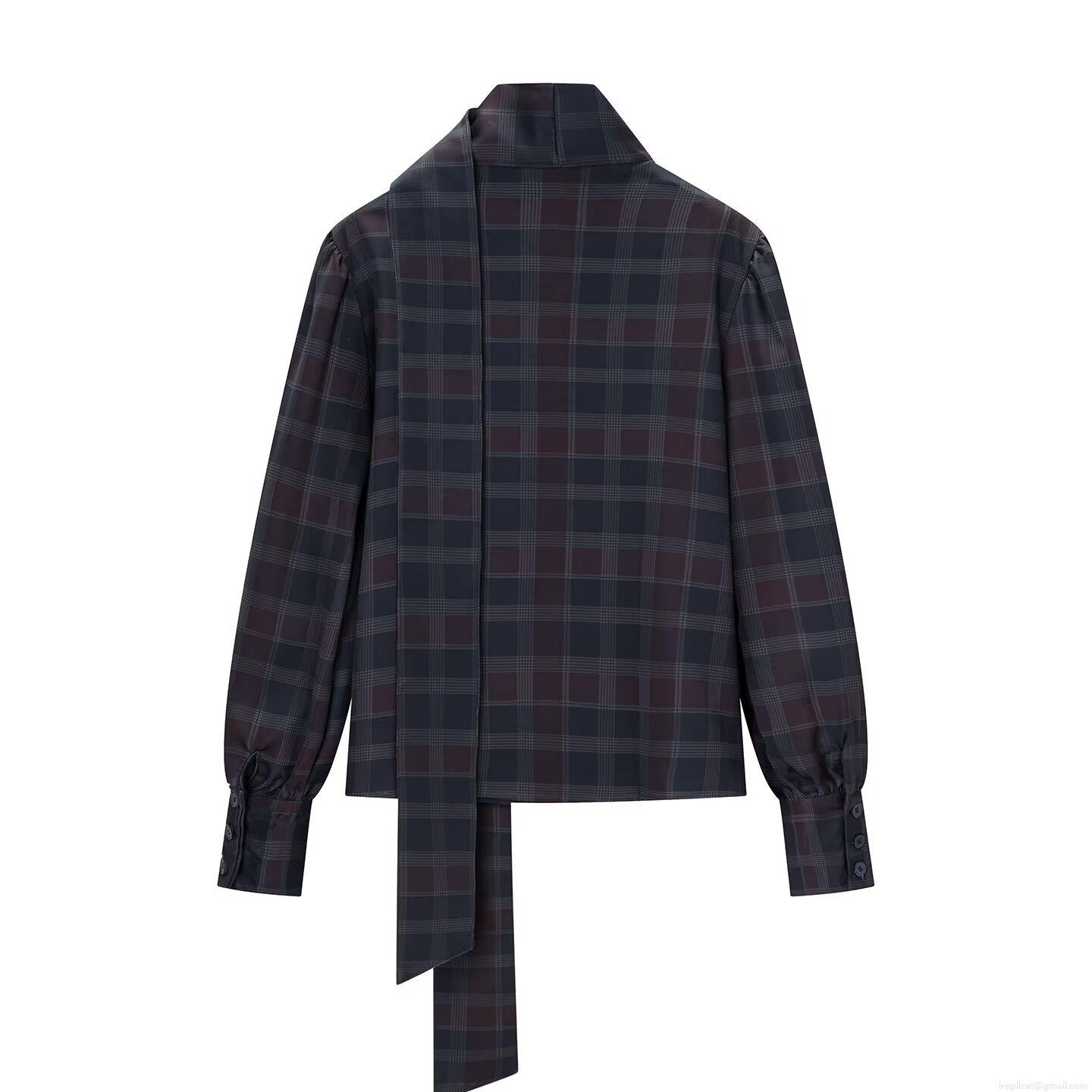 • Women's Casual Plaid Two Piece Set Tie Neck Long Sleeve Shirt And Pleated High Waist Midi Skirt Western Style Polyester Streetwear Matching Outfit For Fall Winter