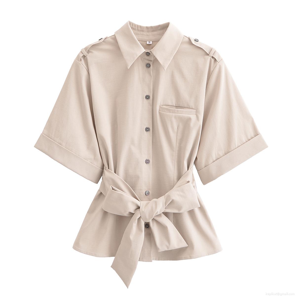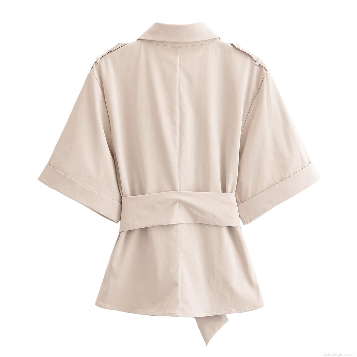 • Women's Casual Polyester Two Piece Skirt Set Short Sleeve Lapel Button Up Shirt And Double Breasted Midi A-Line Skirt With Belt Office Lady Outfits