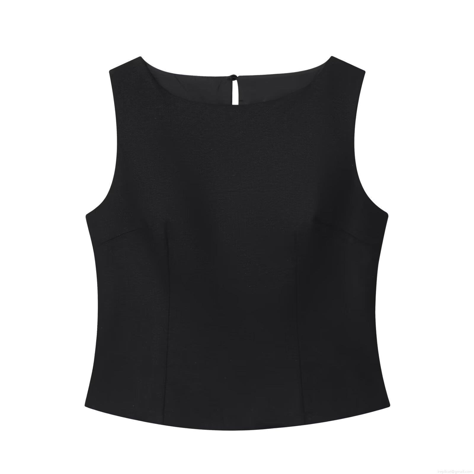• Women's Casual Two Piece Set Sleeveless Round Neck Vest Top and High Waist Pleated A-Line Mid-Length Skirt Solid Color Polyester Linen Blend Summer Streetwear Clothing