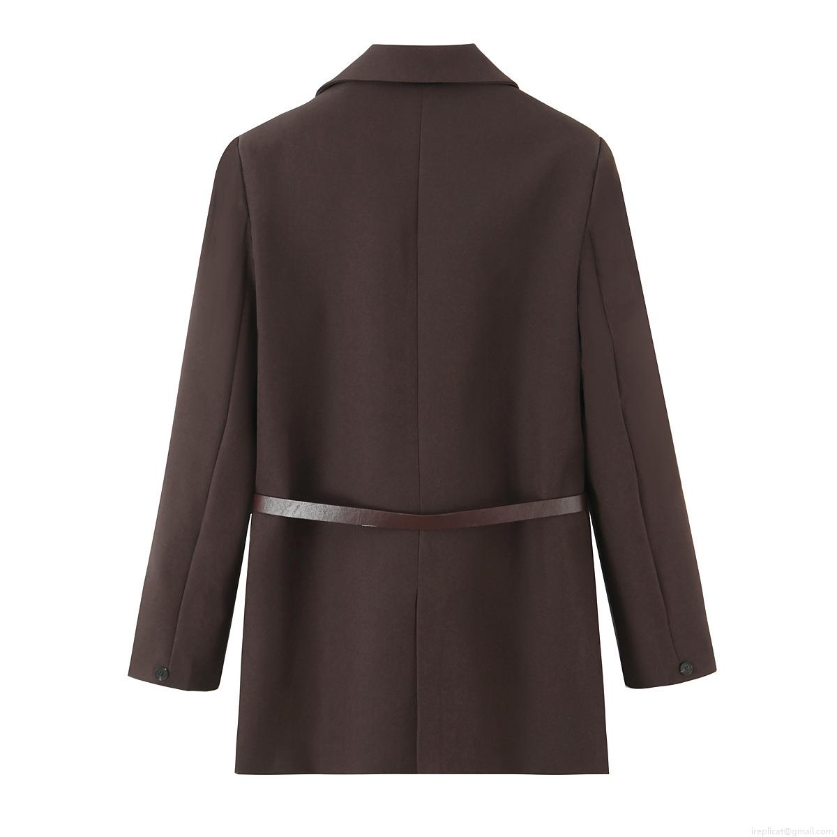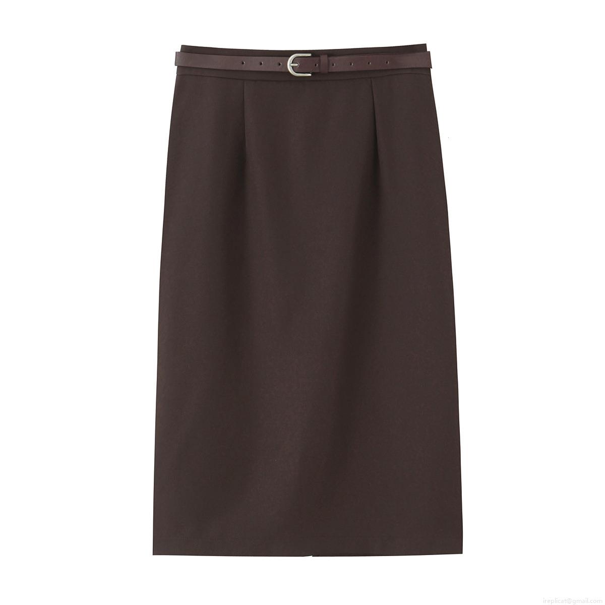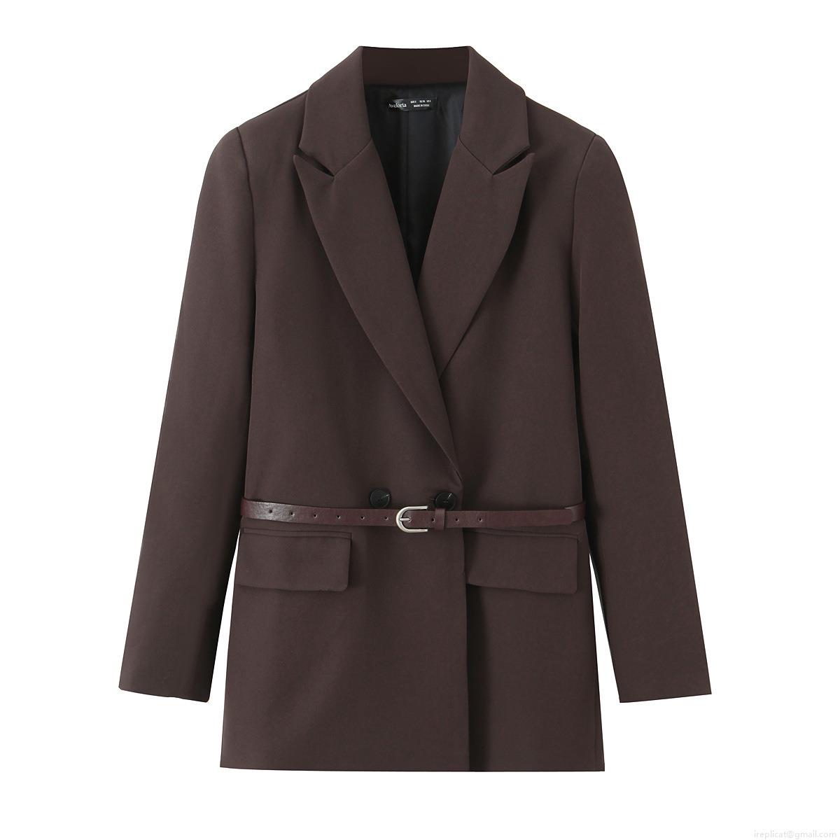 • Women's Casual Two Piece Set Solid Color Loose Coffee Blazer And Midi Skirt With Belt Elegant Office Lady Outfits For Autumn Spring Polyester Suits