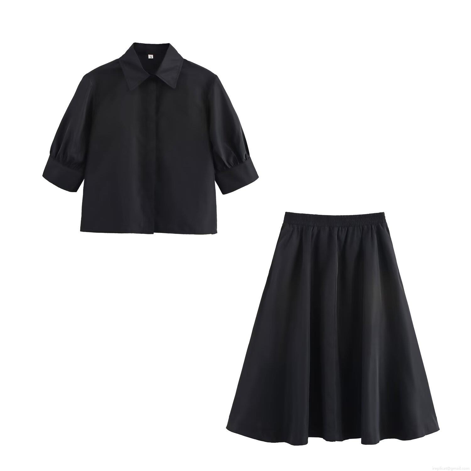 • Women's Casual Two Piece Skirt Set Short Sleeve Button Down Shirt And High Waist Midi A-Line Skirt Solid Color Summer Fashion Streetwear Outfit For Women
