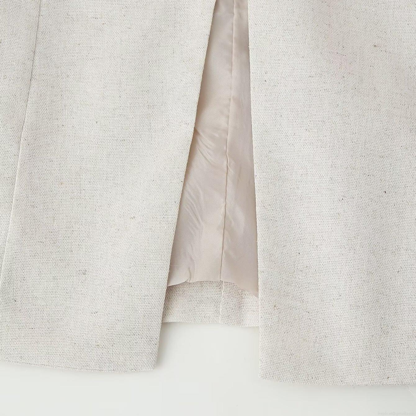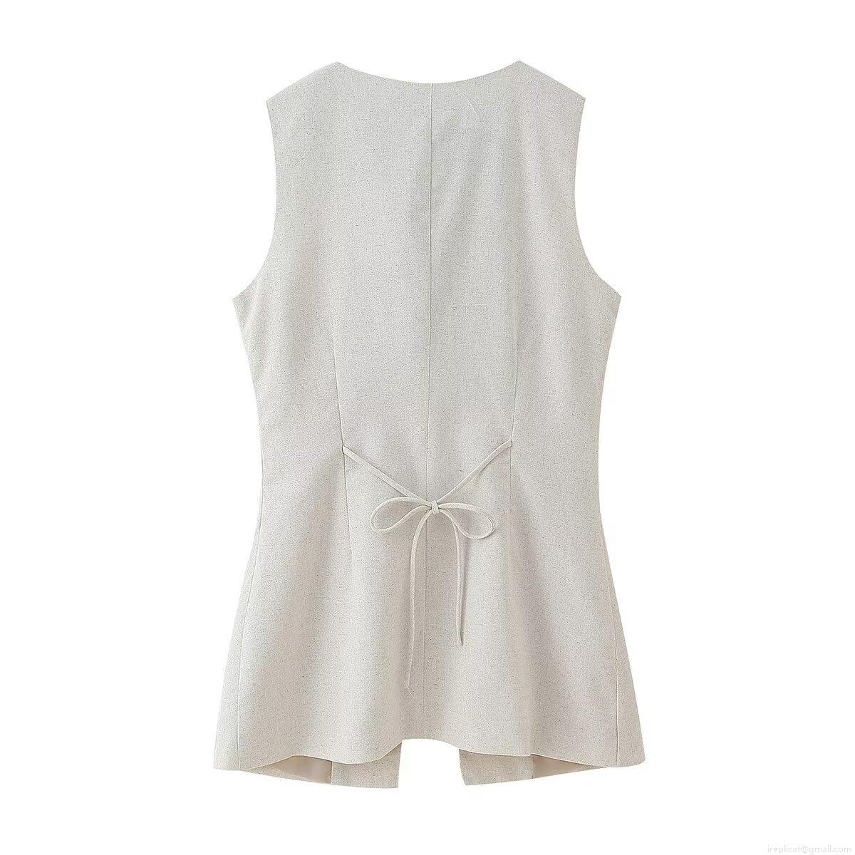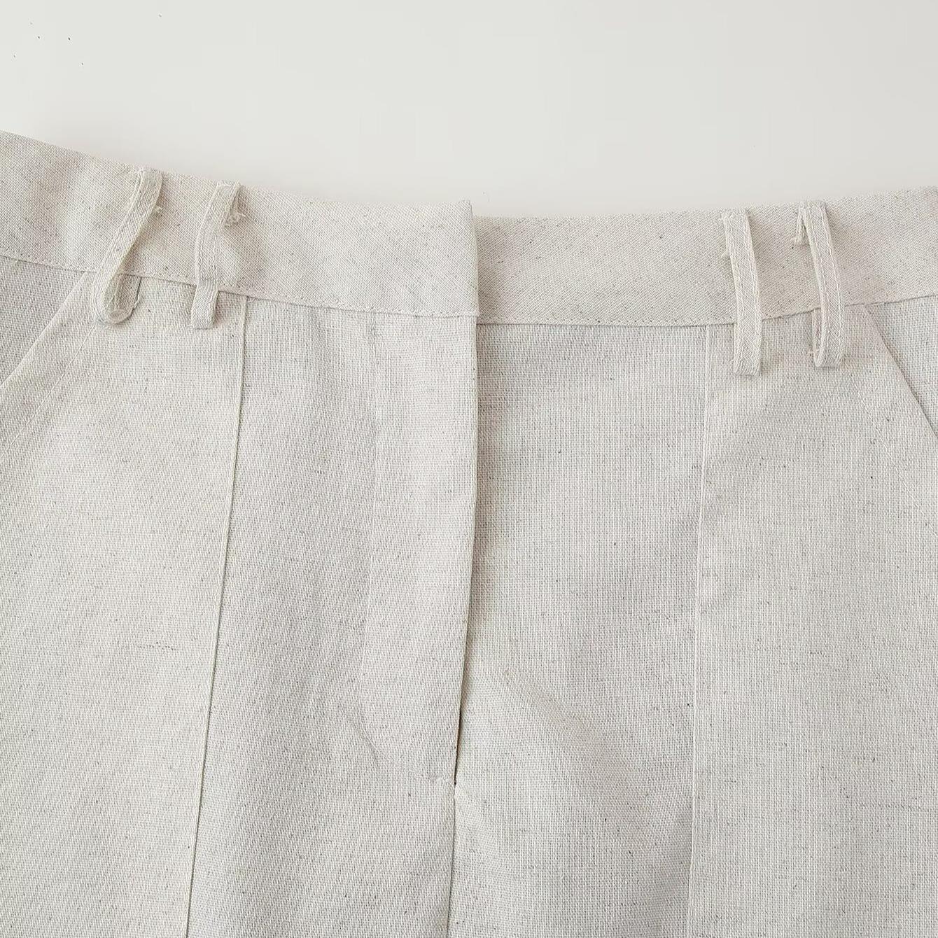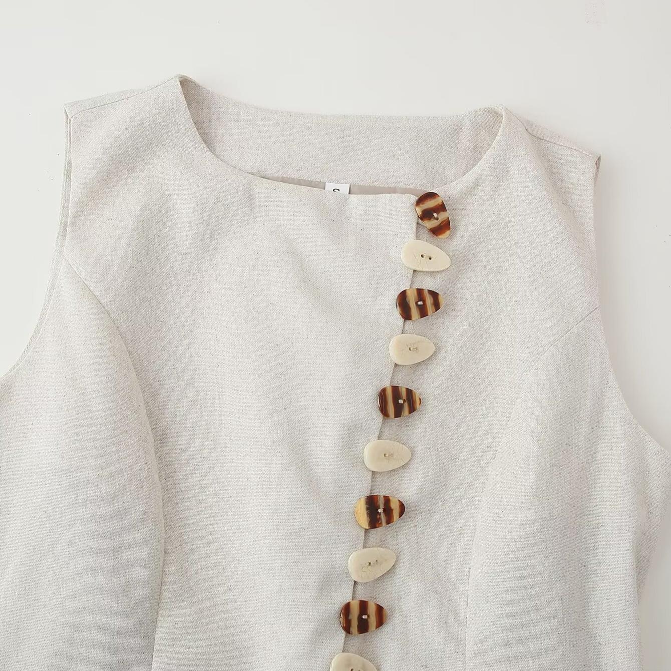 • Women's Casual Two Piece Skirt Set Sleeveless Round Neck Button Top And A-Line Mini Skirt With Pockets Summer Oatmeal Cotton Linen Texture Polyester Outfit For Women