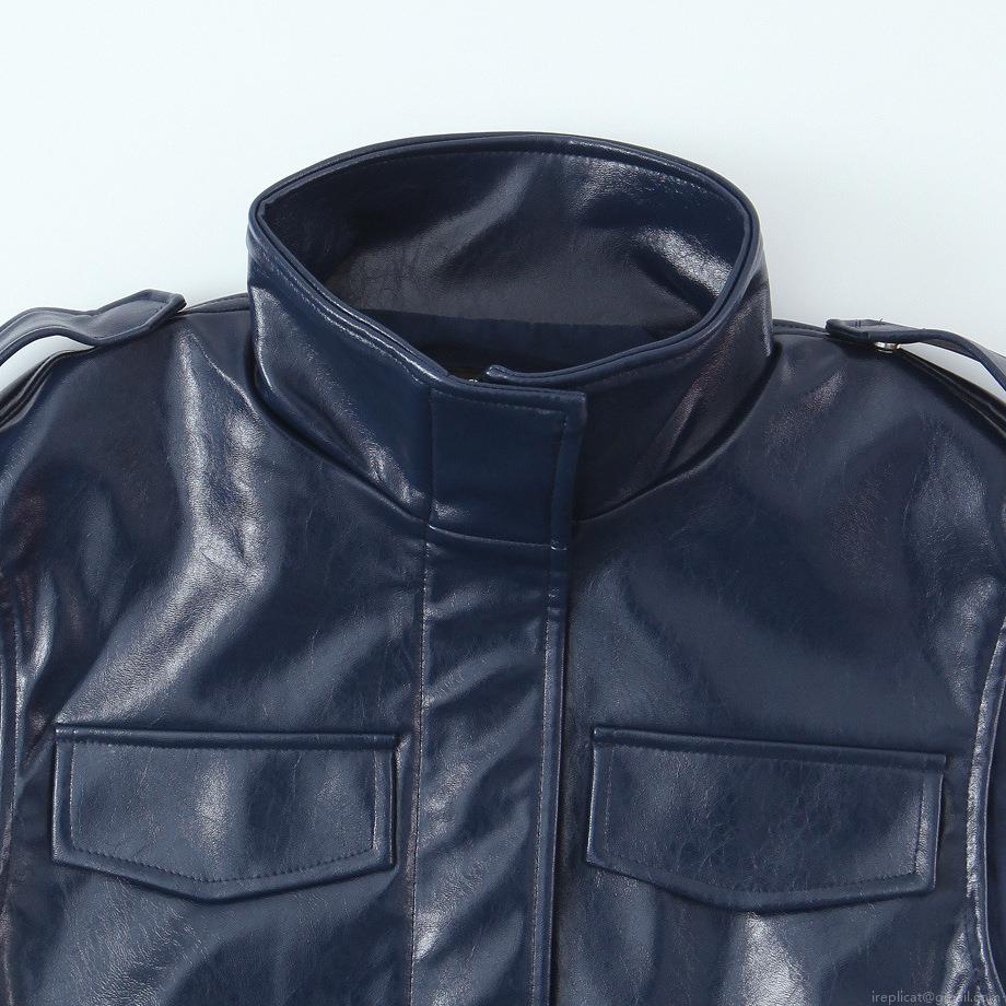 Solid Color, Stand-up Collar, Rivet Decoration, Metal Zipper, Epaulette Design