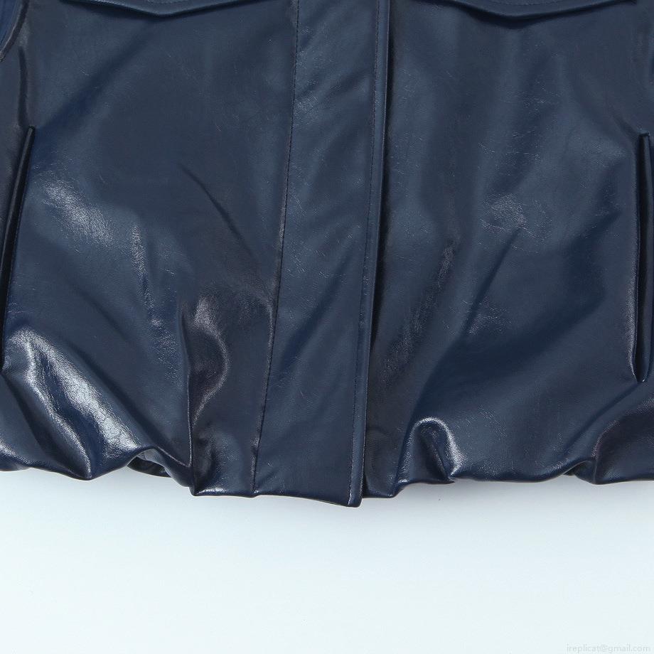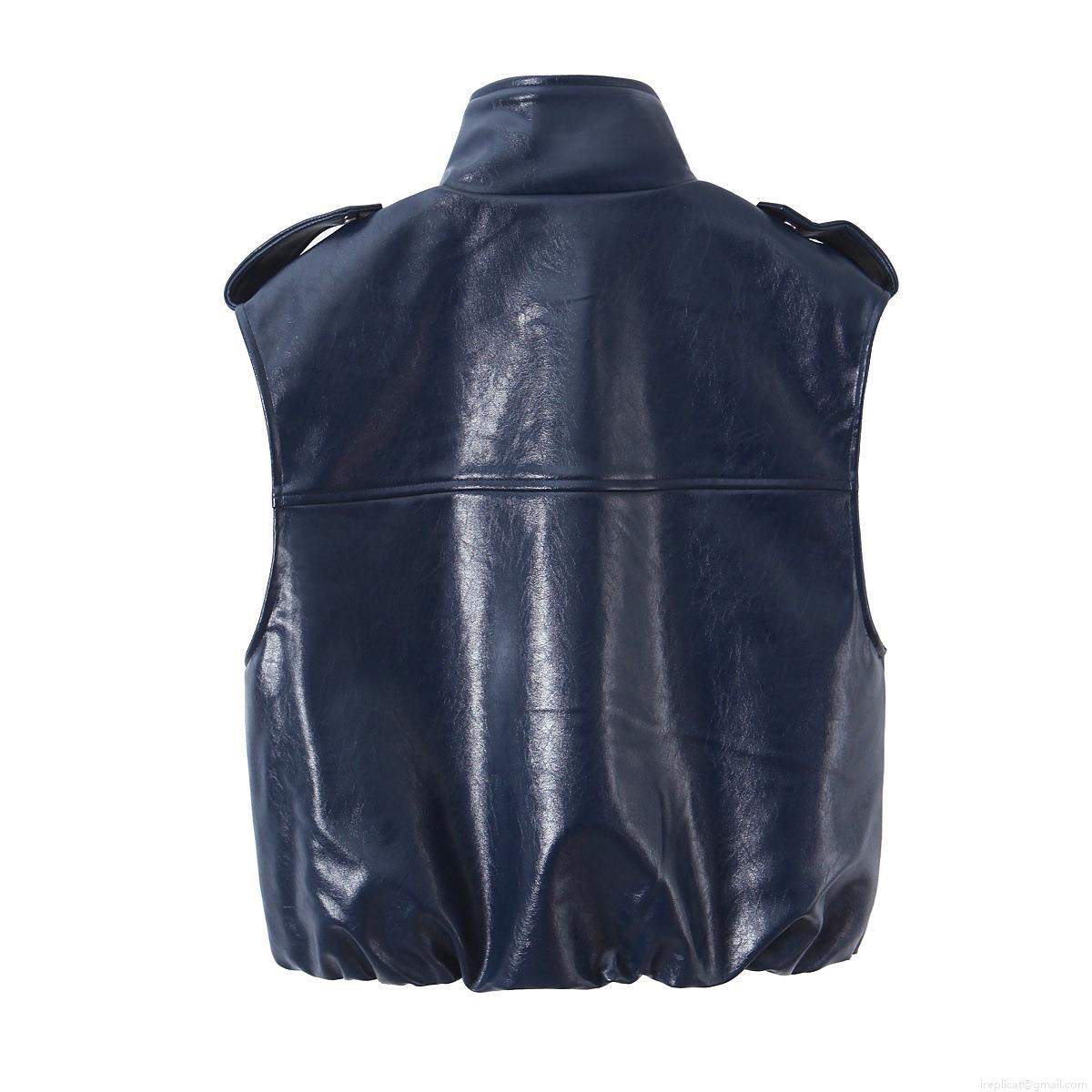 Women's Deep Blue PU Faux Leather Two Piece Set Stand Collar Vest And Rivet Mini Skirt Chic Streetwear Motor Style Outfit
