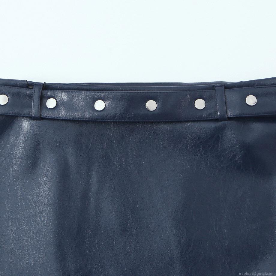 • Women's Deep Blue PU Faux Leather Two Piece Set Stand Collar Vest And Rivet Mini Skirt Chic Streetwear Motor Style Outfit