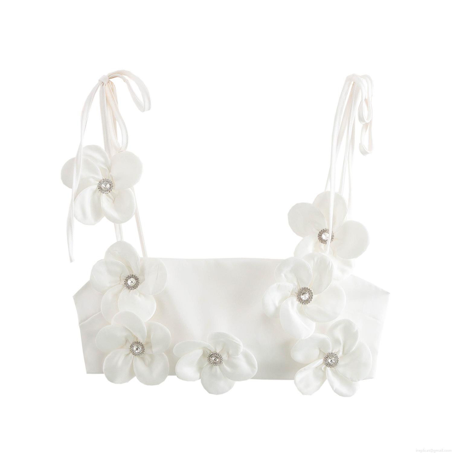 • Women's Elegant 2 Piece Skirt Set 3D Flower Spaghetti Strap Lace-up Crop Top And Satin Fishtail Maxi Skirt Sexy Evening Party Outfit