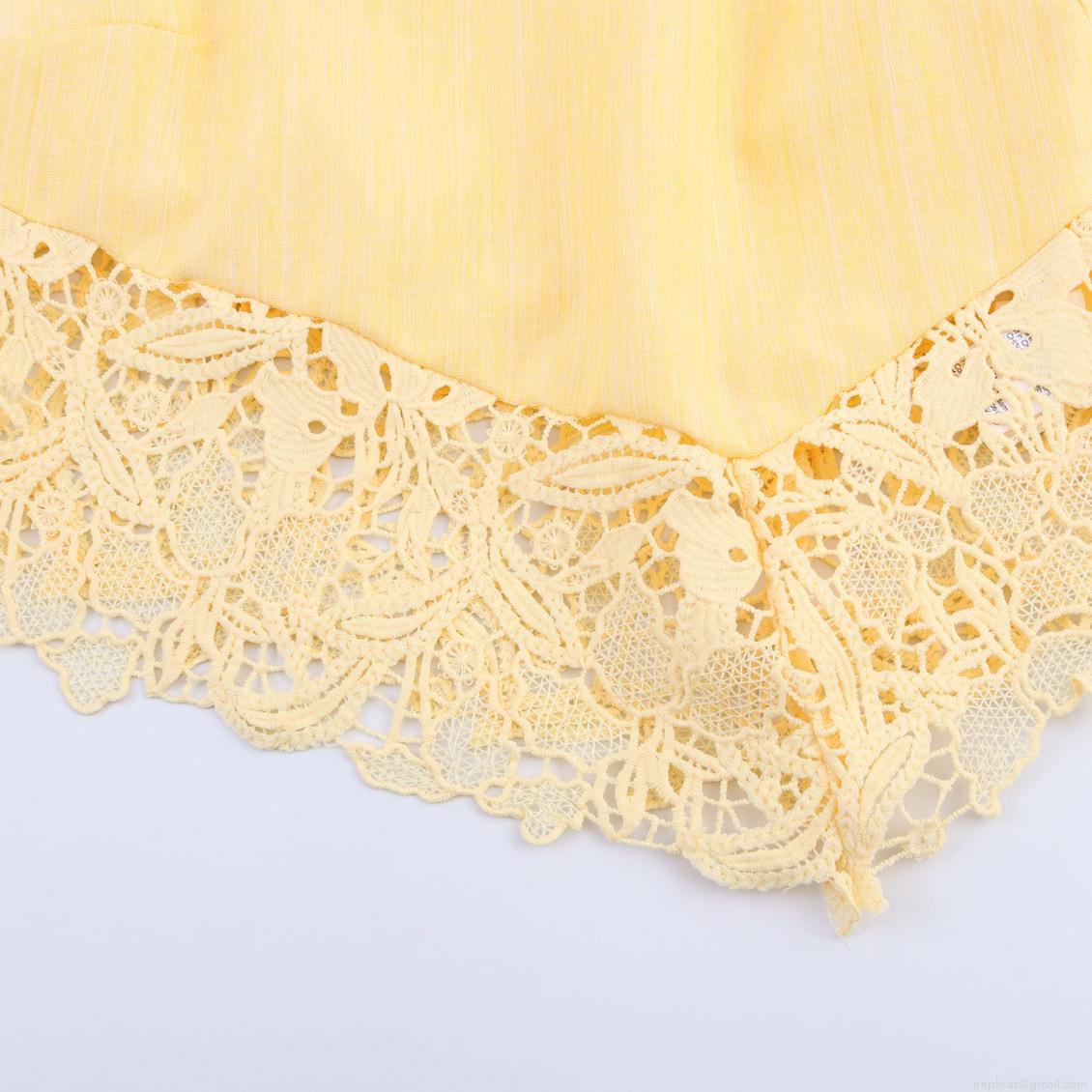 • Women's Elegant 2 Piece Skirt Set Sleeveless Lace Patchwork Round Neck Top And High Waist Irregular Hem Maxi Skirt Yellow Summer Outfits