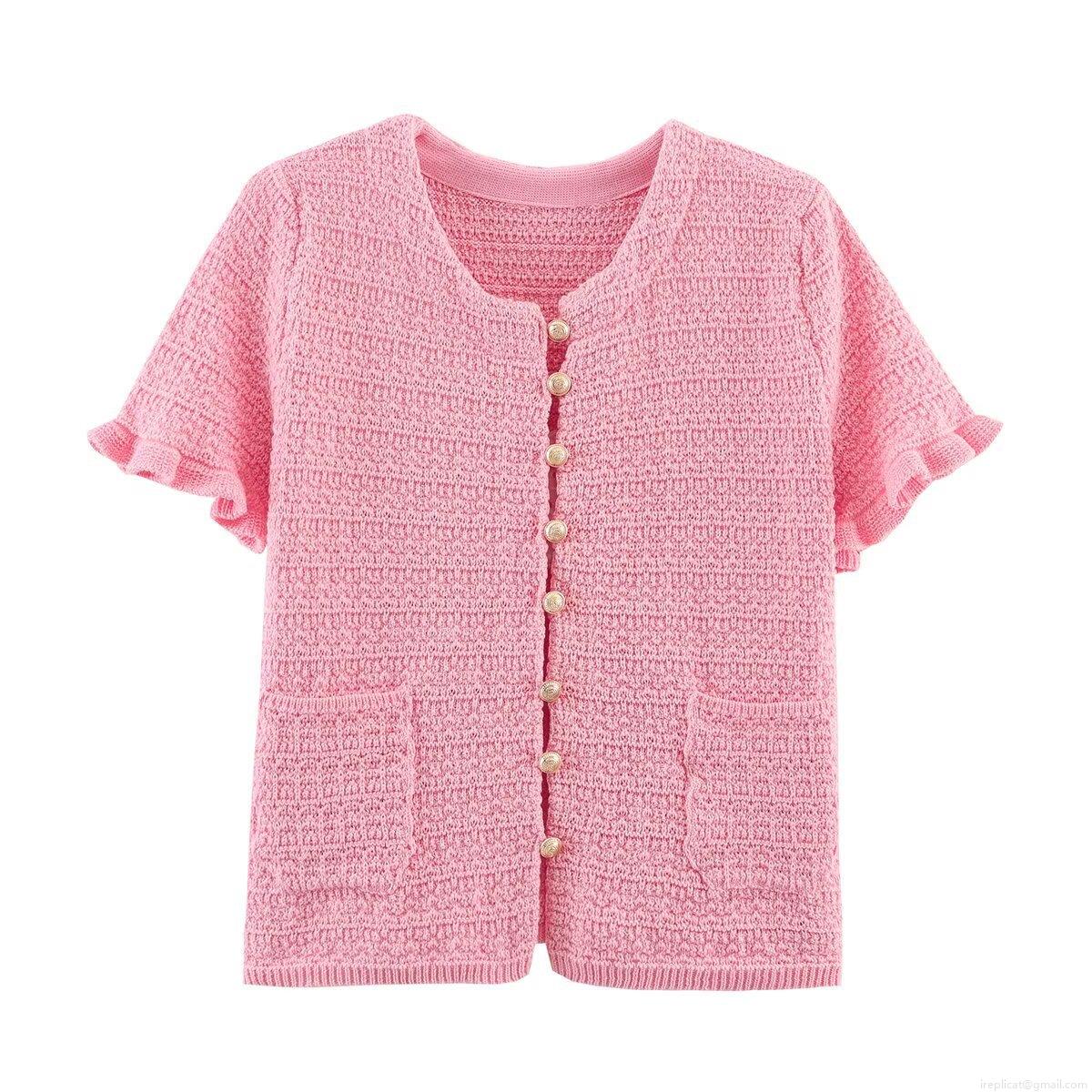 Pearl Button Decoration, Ruffled Cuffs, High-waisted Splicing
