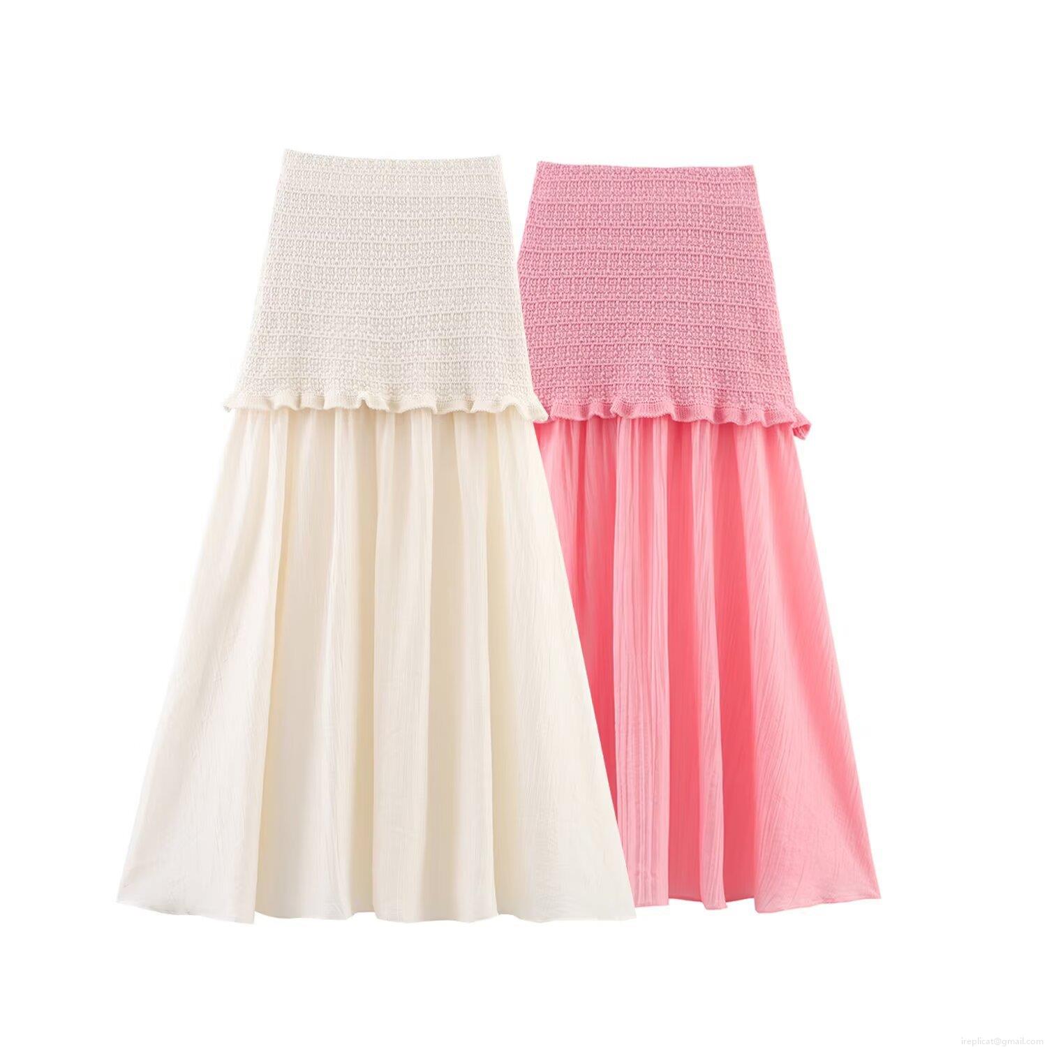 • Women's Elegant 2-Piece Knit Skirt Set Short Sleeve Cardigan With Pearl Buttons And High Waist Patchwork Pleated Maxi Skirt Casual Outfit