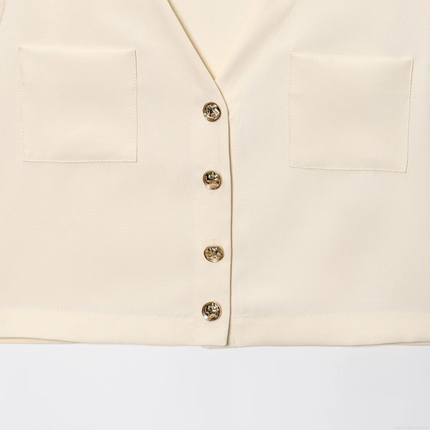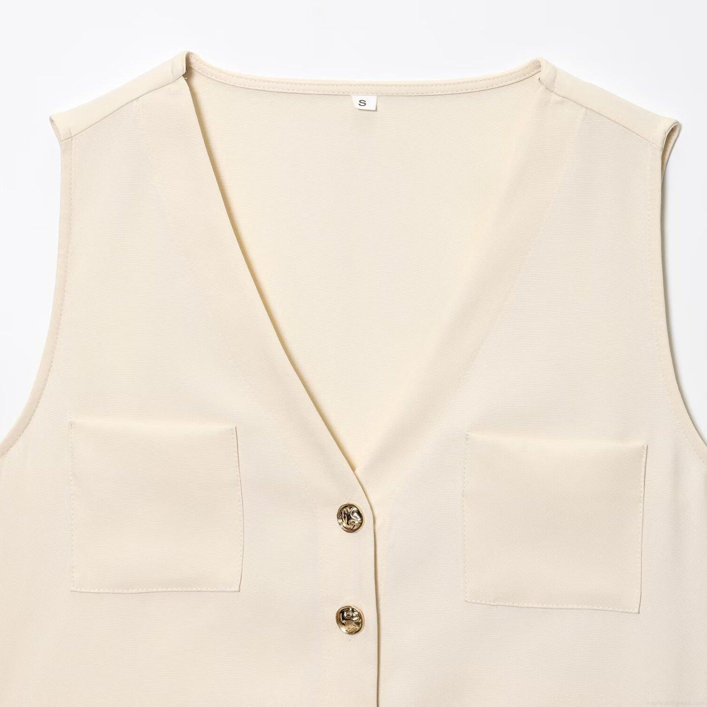 • Women's Elegant 2-Piece Outfit Set Polyester Blend V-Neck Sleeveless Vest Top and High Waist Midi Skirt with Slit Decorative Gold Buttons for Summer Office Commute