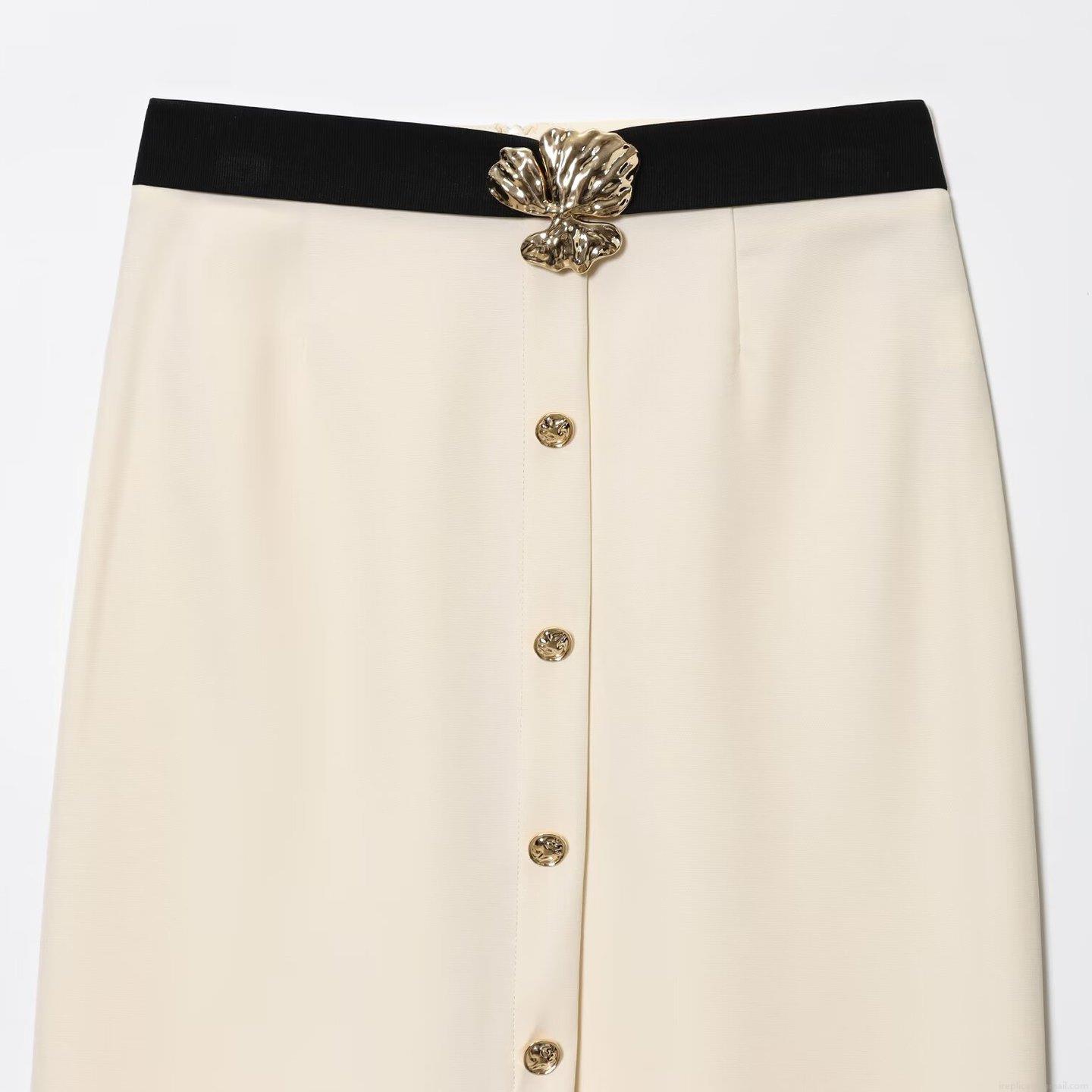 Solid Color, Gold Metal Buttons, High-waisted Slit, Shell-shaped Waist Buckle