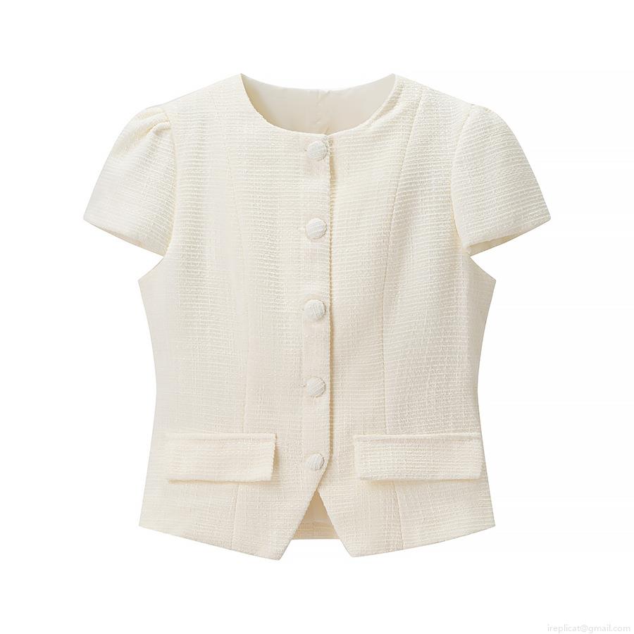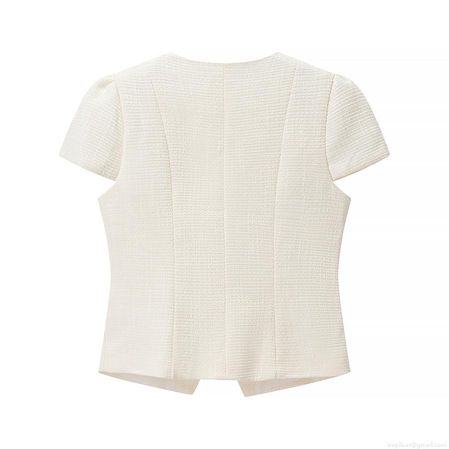 • Women's Elegant 2-Piece Tweed Skirt Set French Style Short Sleeve Round Neck Button Down Top And Pleated Bubble Mini Skirt Outfits For Party Office Lady Cream White
