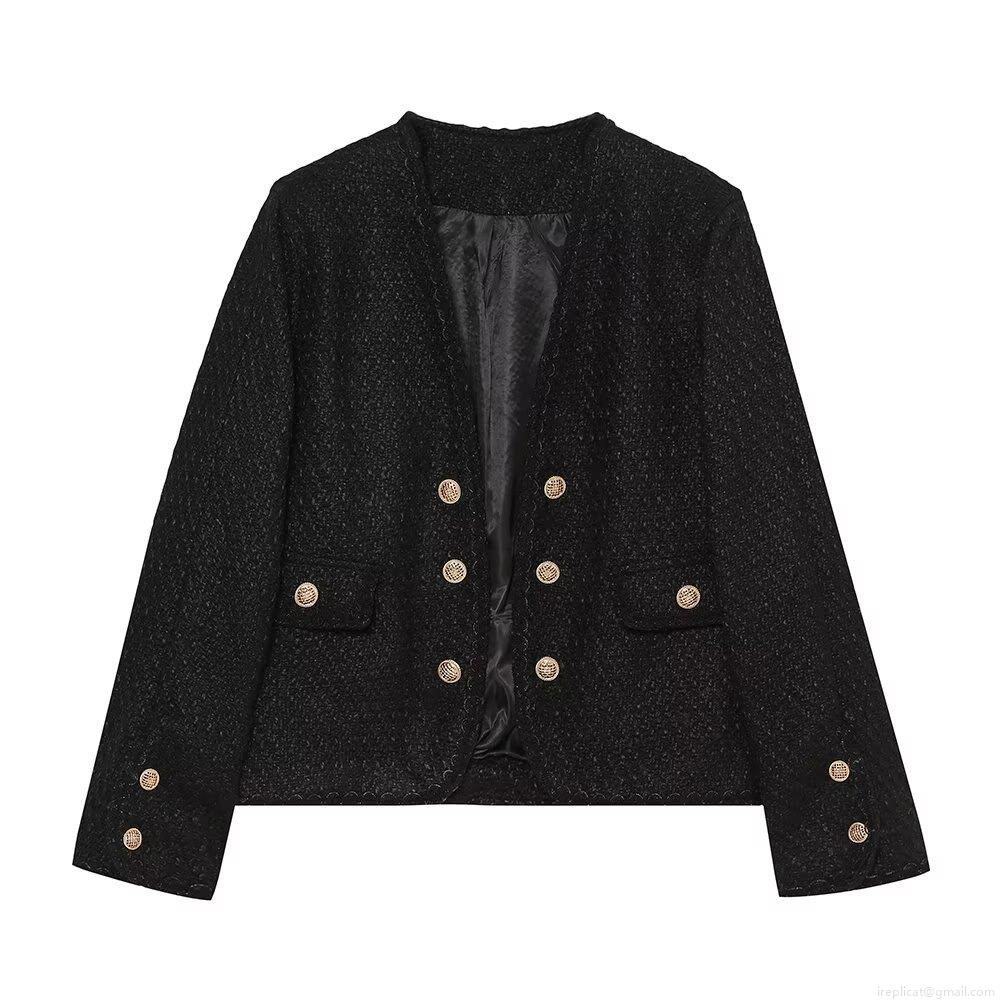 Women's Elegant Black Tweed Skirt Set Two Piece Long Sleeve Round Neck Jacket With Golden Buttons And A-Line Mini Skirt For Office Party Streetwear Fashion Outfit