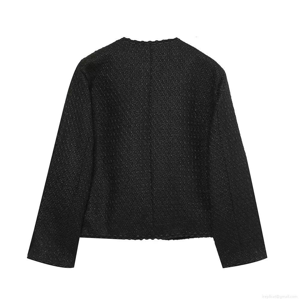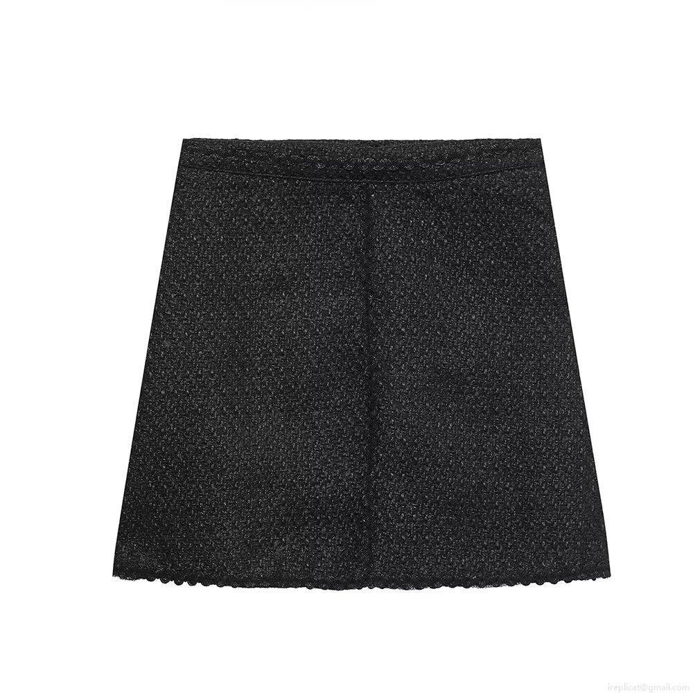 • Women's Elegant Black Tweed Skirt Set Two Piece Long Sleeve Round Neck Jacket With Golden Buttons And A-Line Mini Skirt For Office Party Streetwear Fashion Outfit