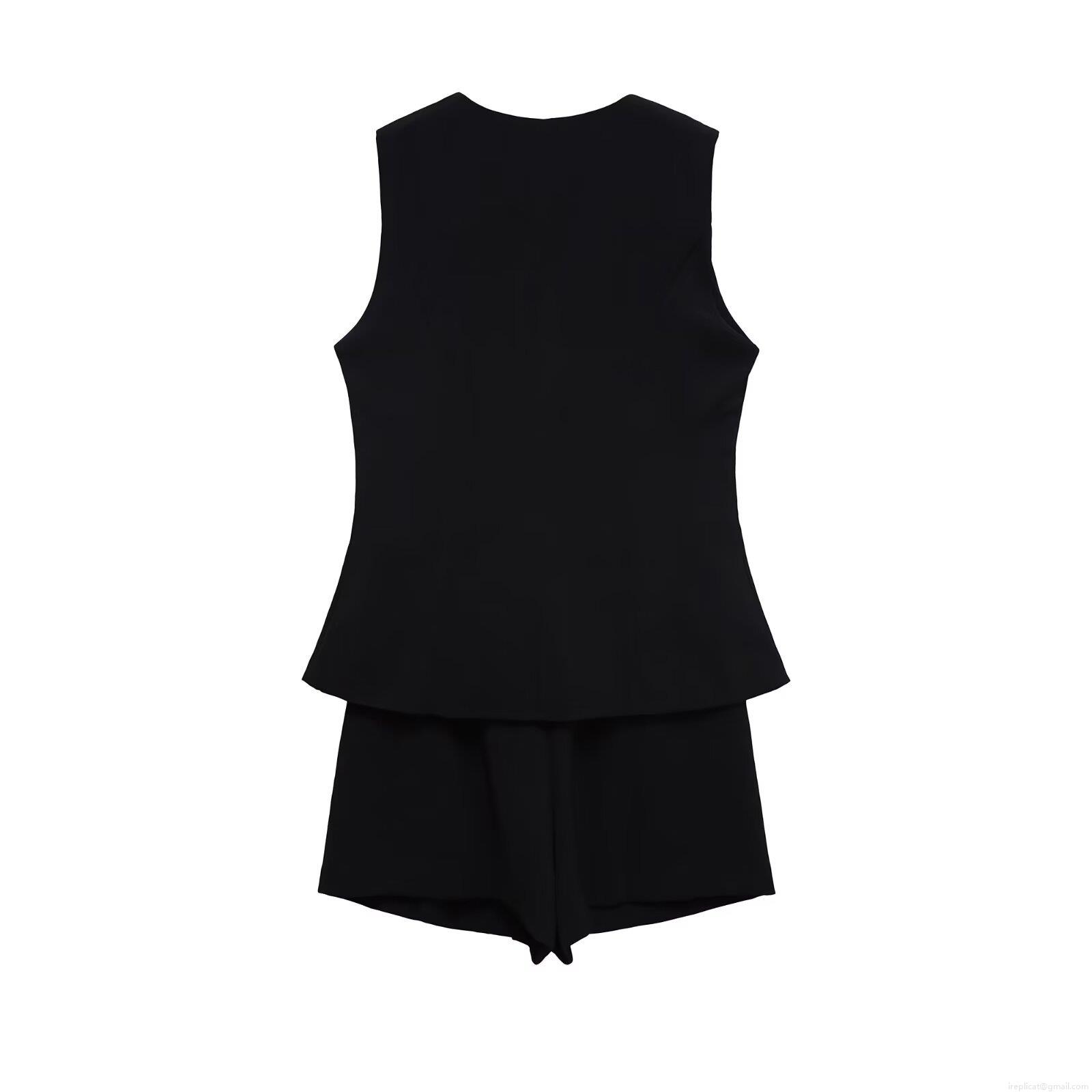 • Women's Elegant Black Two Piece Set Sleeveless Single Breasted Vest Top and Mini Skirt Professional Office Lady Summer Outfits Party Wear
