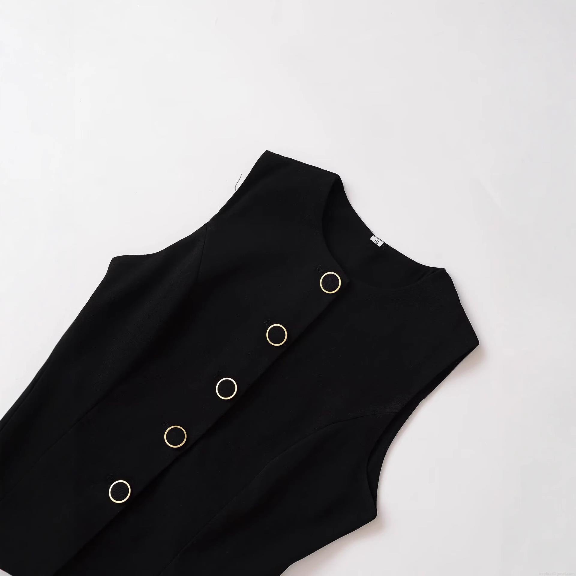 Solid Color, Sleeveless, Self-cultivation, Single-breasted, Metal Buttons