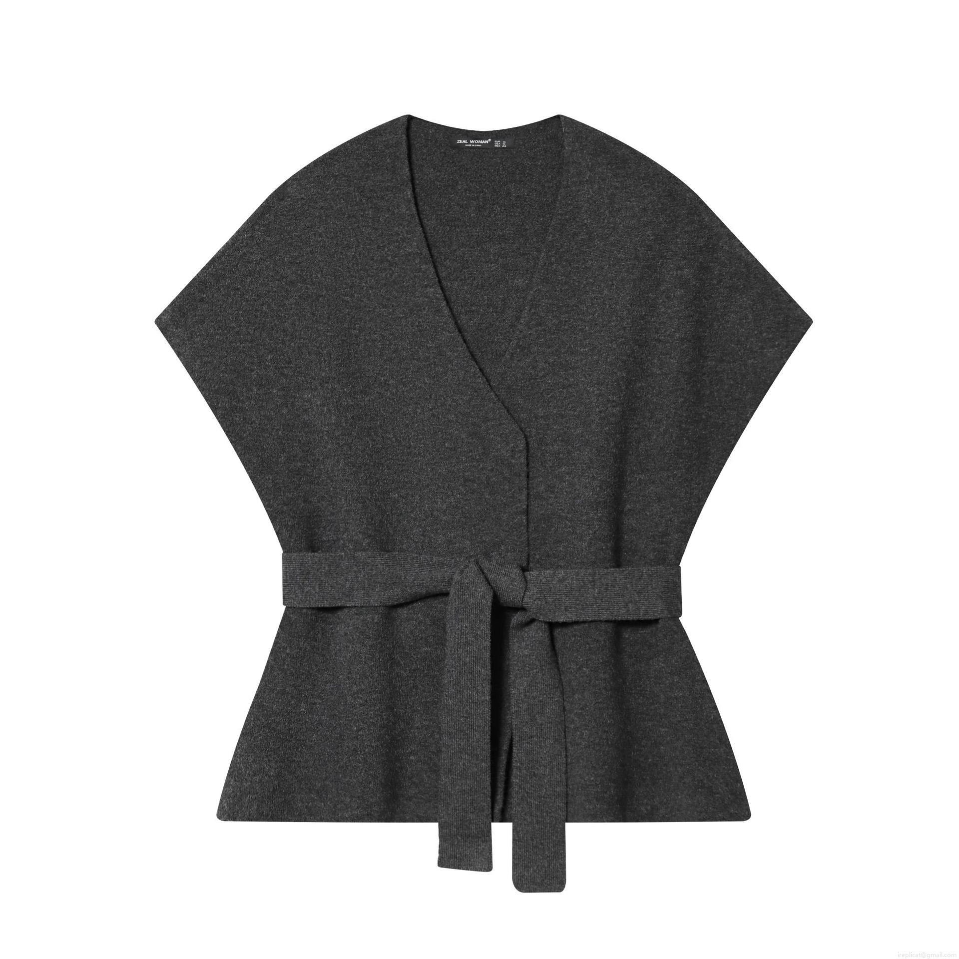 • Women's Elegant Dark Grey 100% Polyester Knitted Two Piece Set V Neck Sleeveless Top With Belt And High Waist Long Skirt Minimalist Casual Outfits