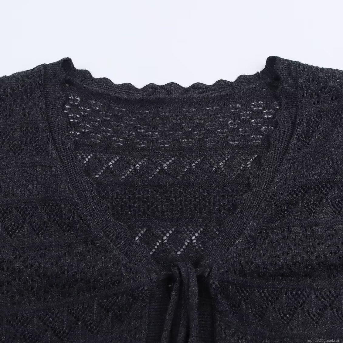 • Women's Elegant Knit Two-Piece Set Hollow Out Tied Cardigan Top And Mid-Length Skirt Polyester Casual Autumn Winter Outfit For Ladies