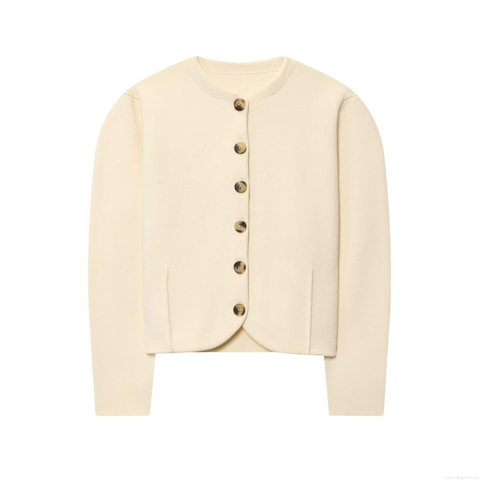 Solid Color, Marble, Single-breasted, Amber-textured Buttons, Knitted Texture