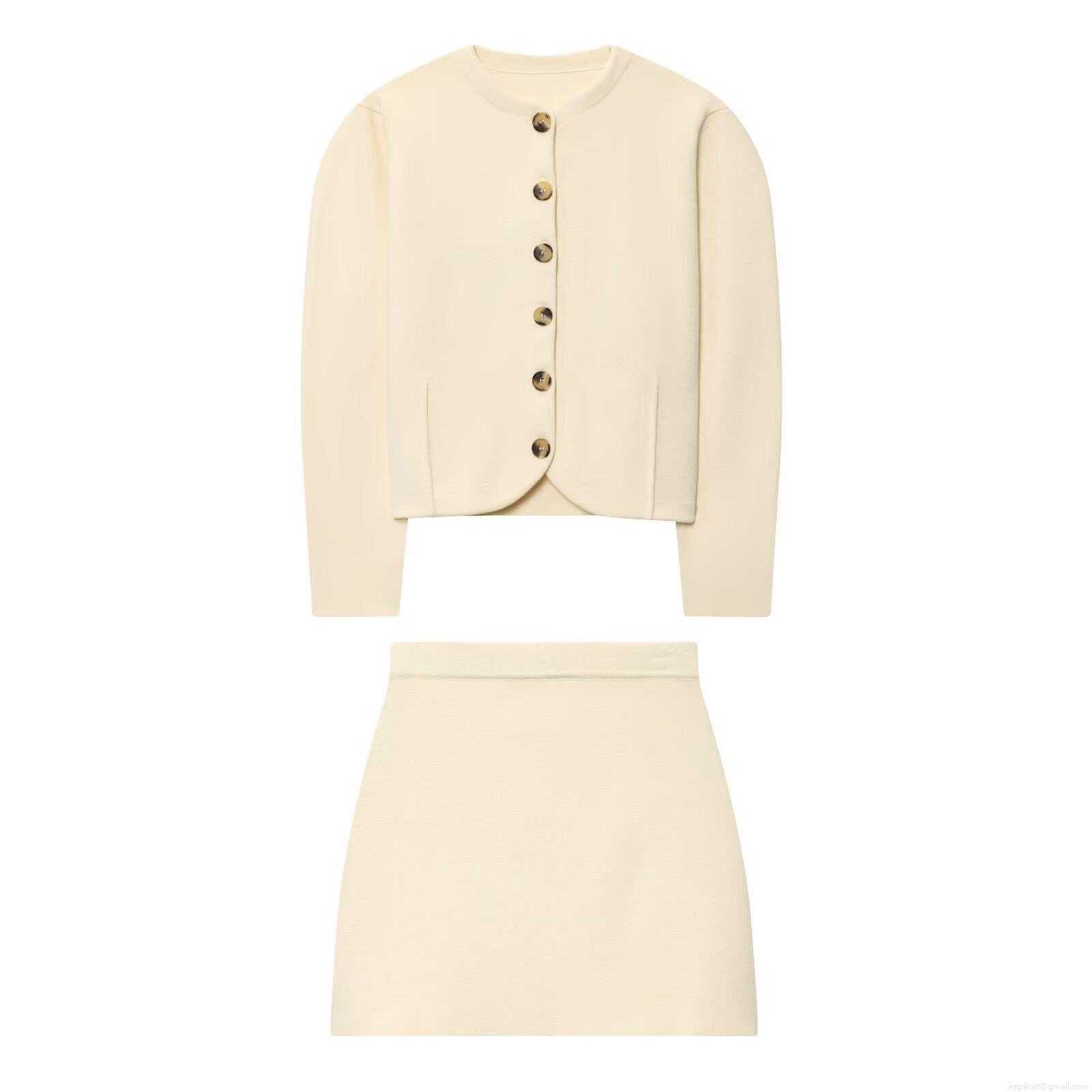 • Women's Elegant Knitted Two Piece Set Round Neck Single Breasted Cardigan and High Waist Mini Skirt Solid Color Polyester Cotton Knitwear for Autumn