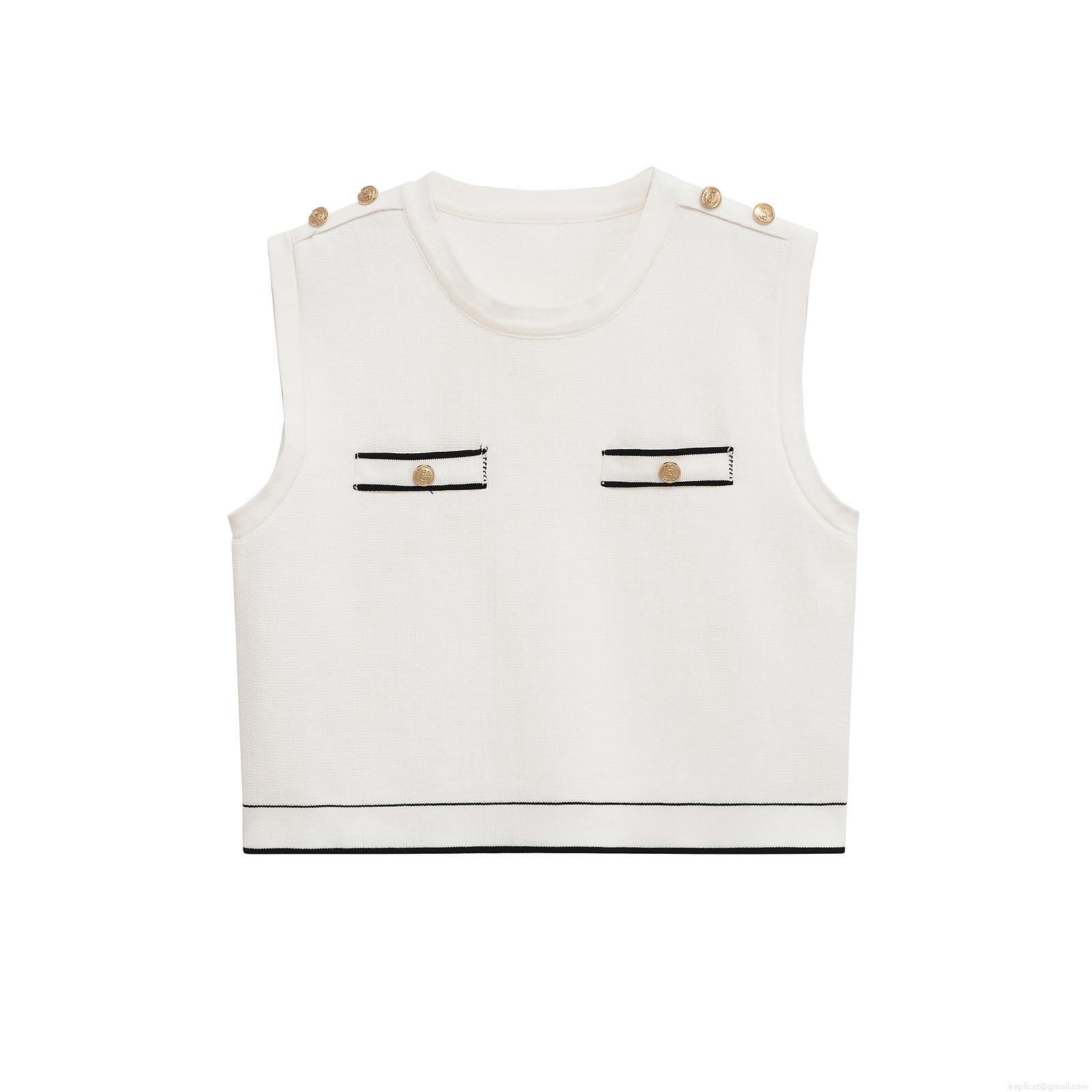 • Women's Elegant Knitted Vest Top and Pleated Mini Skirt Set With Contrast Trim Gold Buttons Sleeveless Two Piece Party Streetwear Outfits