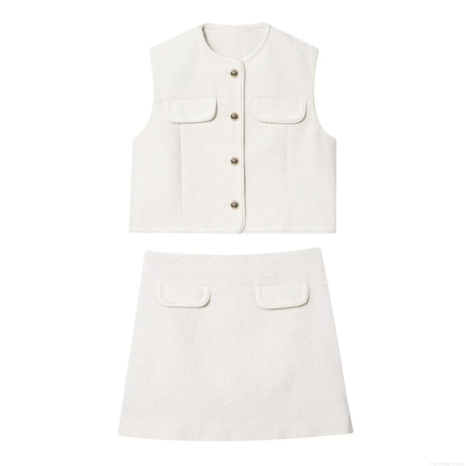 • Women's Elegant Pearl White Tweed Vest Waistcoat And Mini A-Line Skirt Two Piece Set Fashion Casual Outfits For Office Daily Spring Autumn