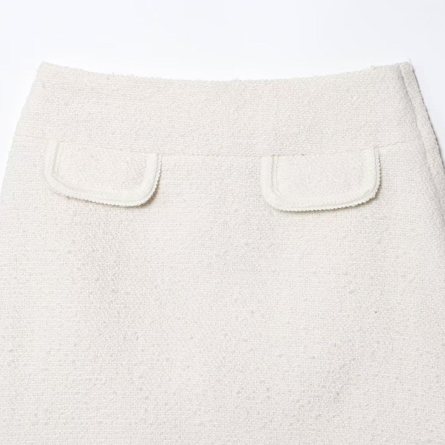 Women's Elegant Pearl White Tweed Vest Waistcoat And Mini A-Line Skirt Two Piece Set Fashion Casual Outfits For Office Daily Spring Autumn