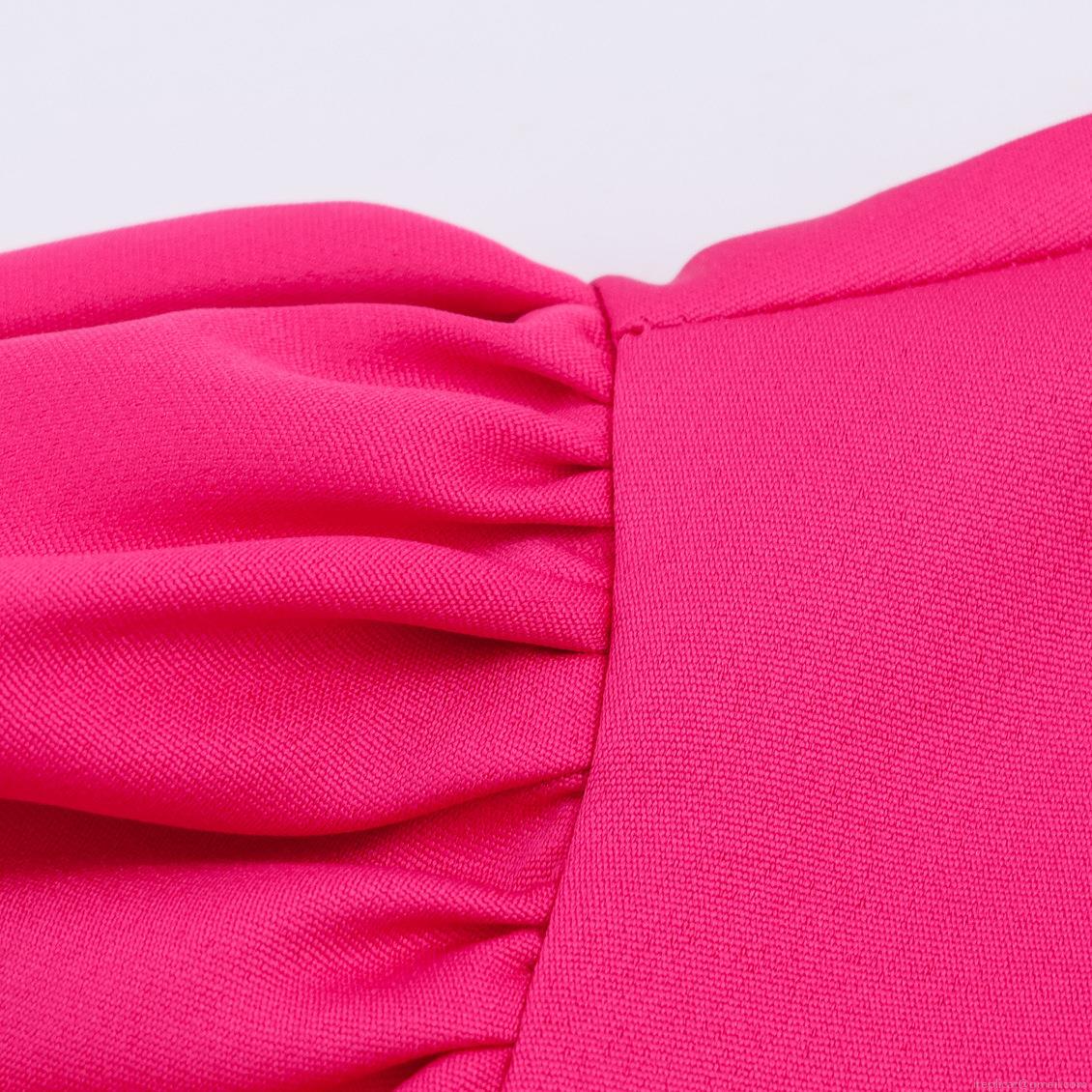 • Women's Elegant Rose Red Two-Piece Skirt Set Rhinestone Round Neck Puff Sleeve Crop Top and High Waist Straight Long Slit Skirt Satin Luster Occasion Party Outfits