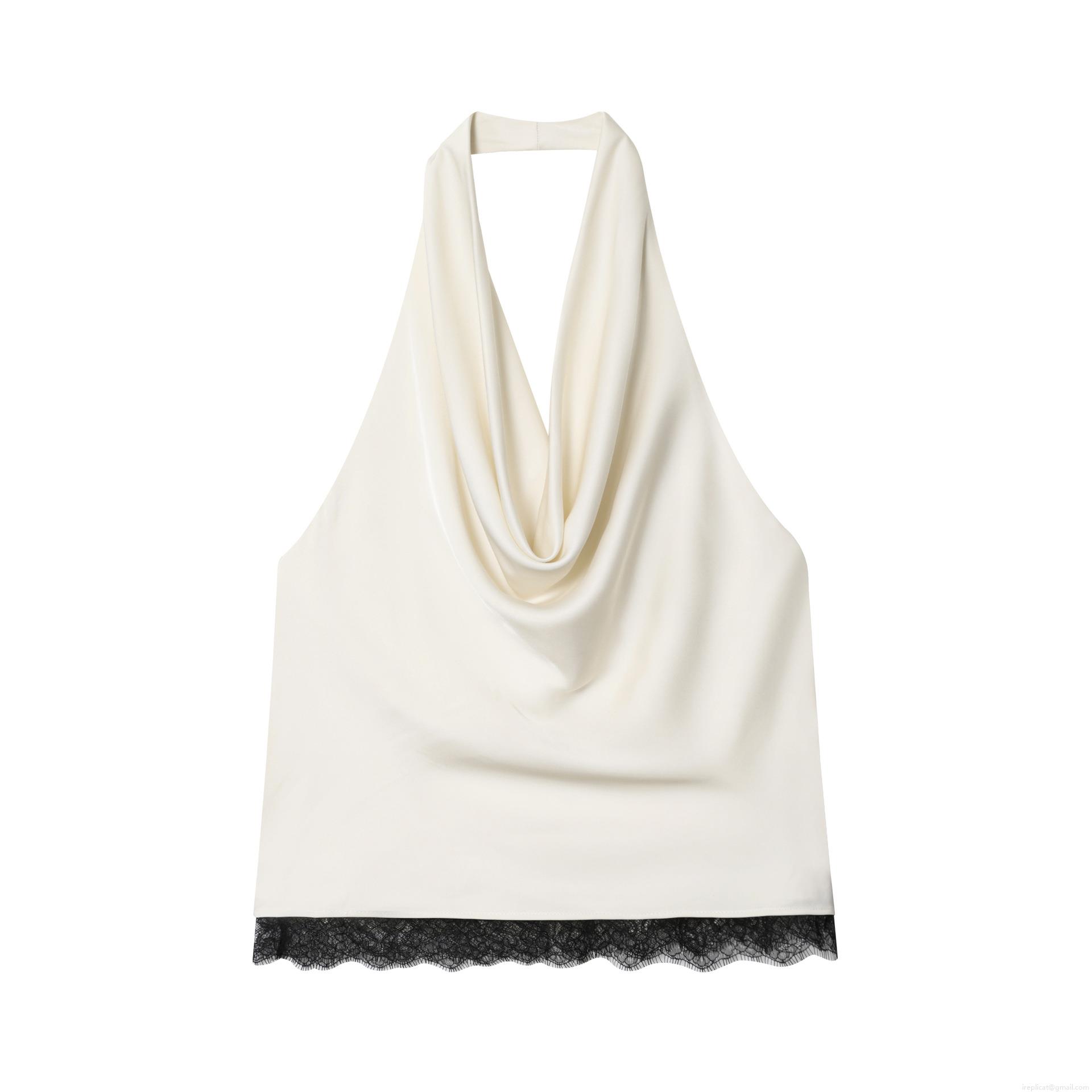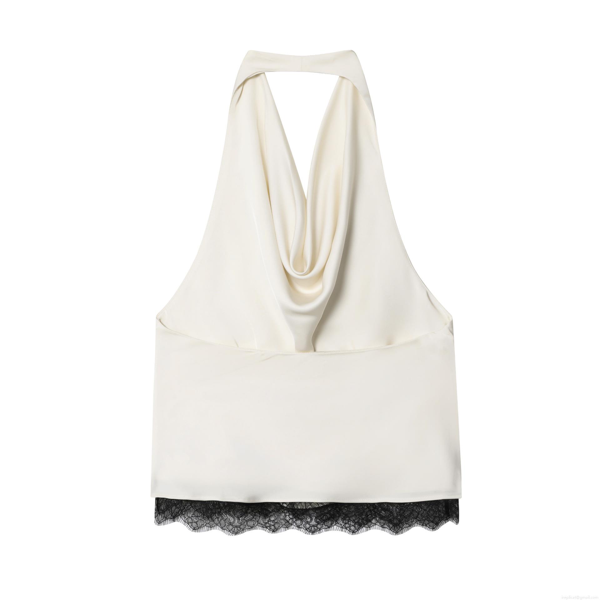 Solid Color, Satin, Neckband, Backless, Lace, High Fork, Lace Trim