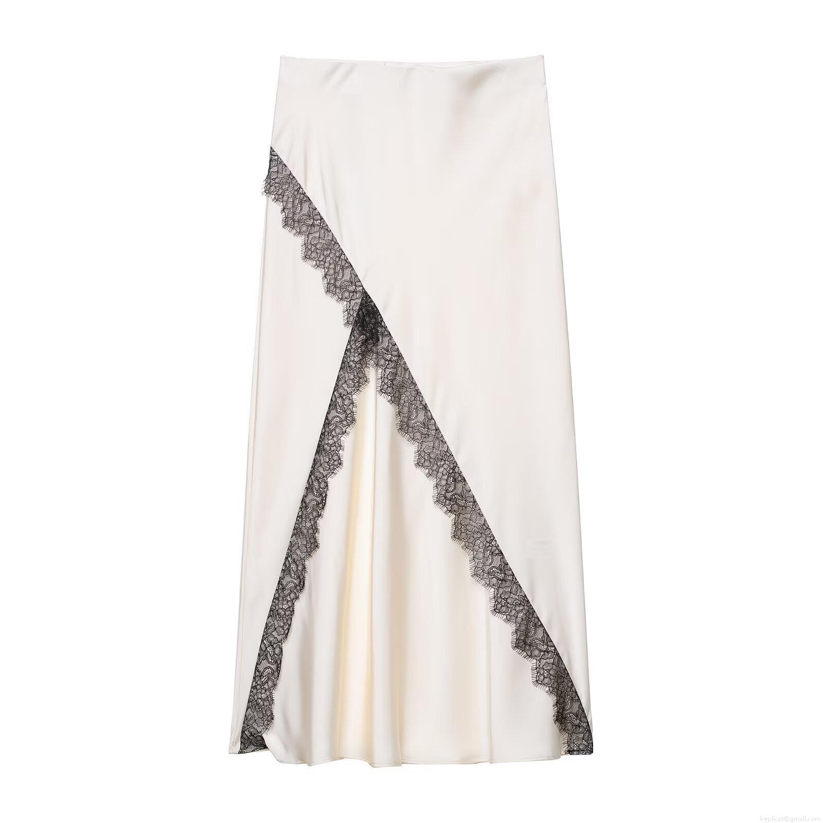 • Women's Elegant Satin Halter Cowl Neck Top and Black Lace Patchwork Midi Skirt Set Sexy Backless Two Piece Outfits for Party Club Vacation