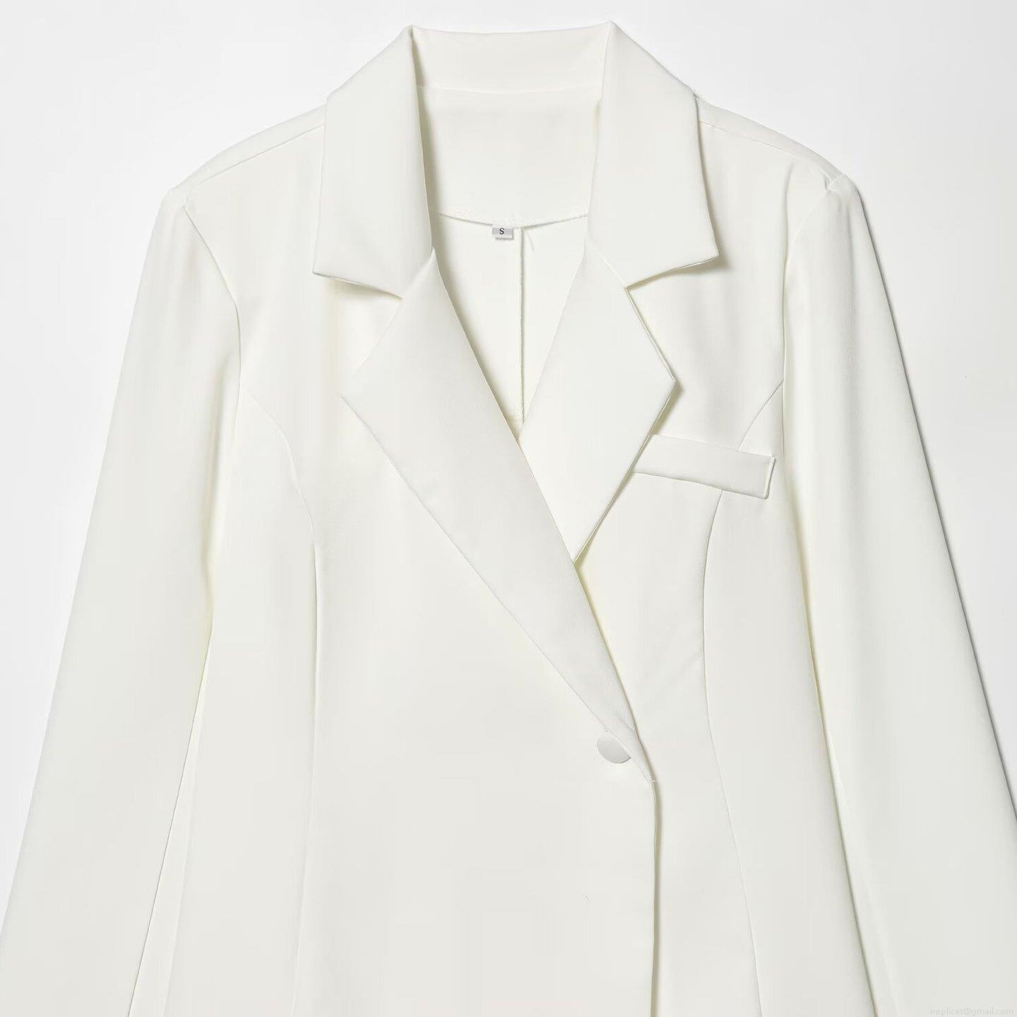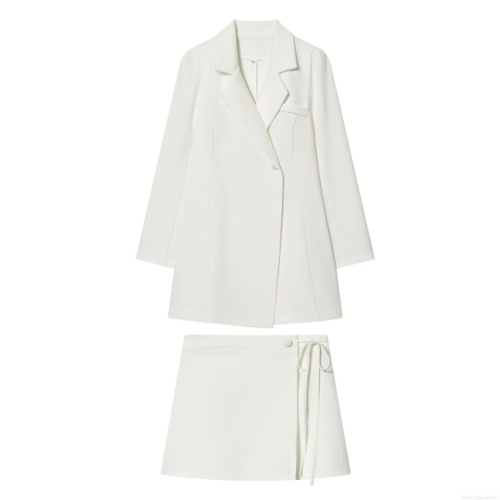• Women's Elegant Solid Color Polyester Blazer and A-Line Mini Skirt Two Piece Suit Set Office Lady Long Sleeve Outfit with Side Tie Waist