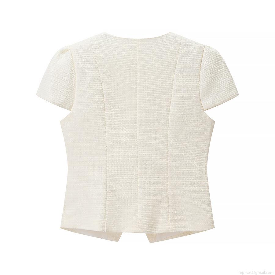 • Women's Elegant Sweet Tweed Two Piece Skirt Set Short Sleeve Round Neck Single Breasted Jacket and Bubble Hem Mini Skirt Outfits Co-ords For Summer Fall Party