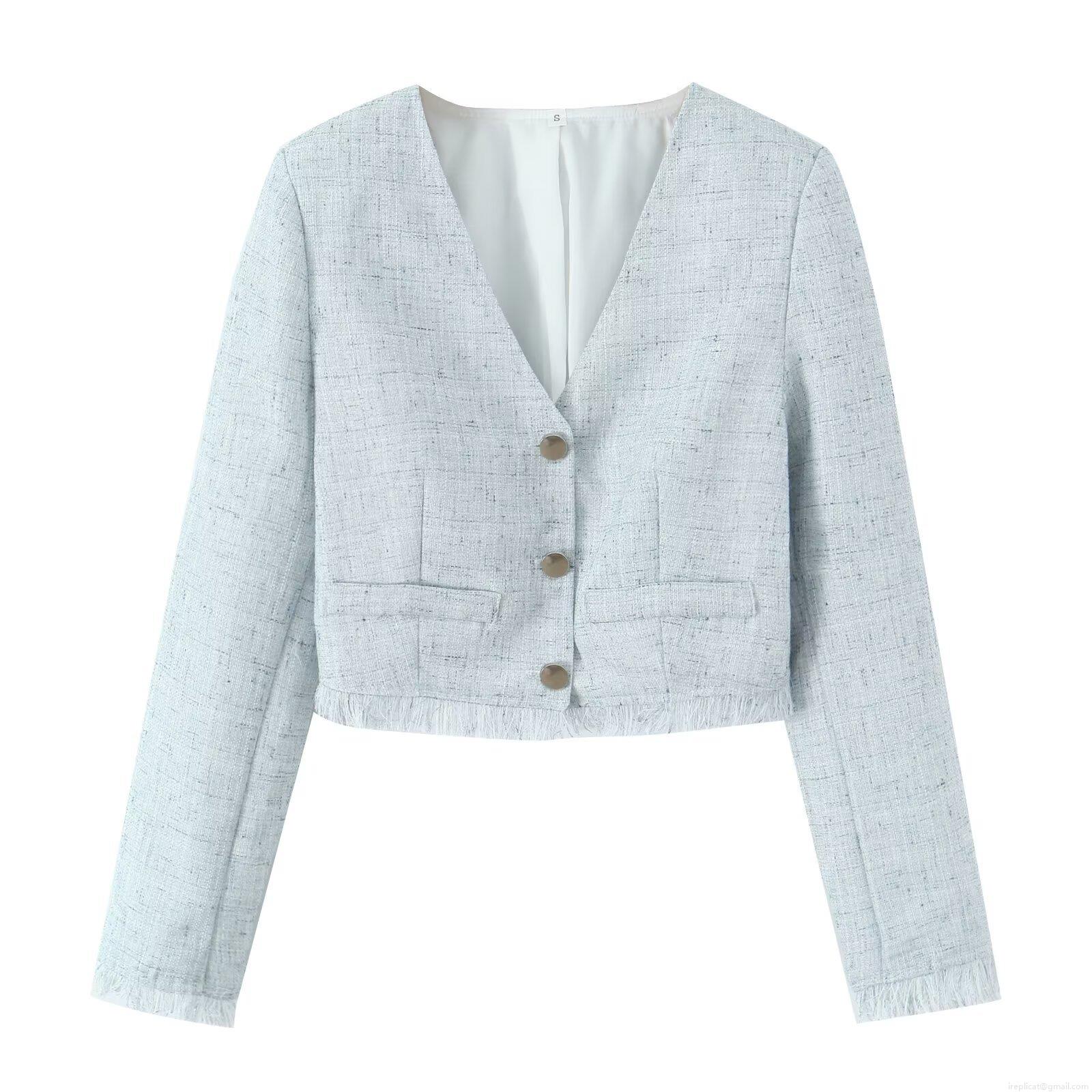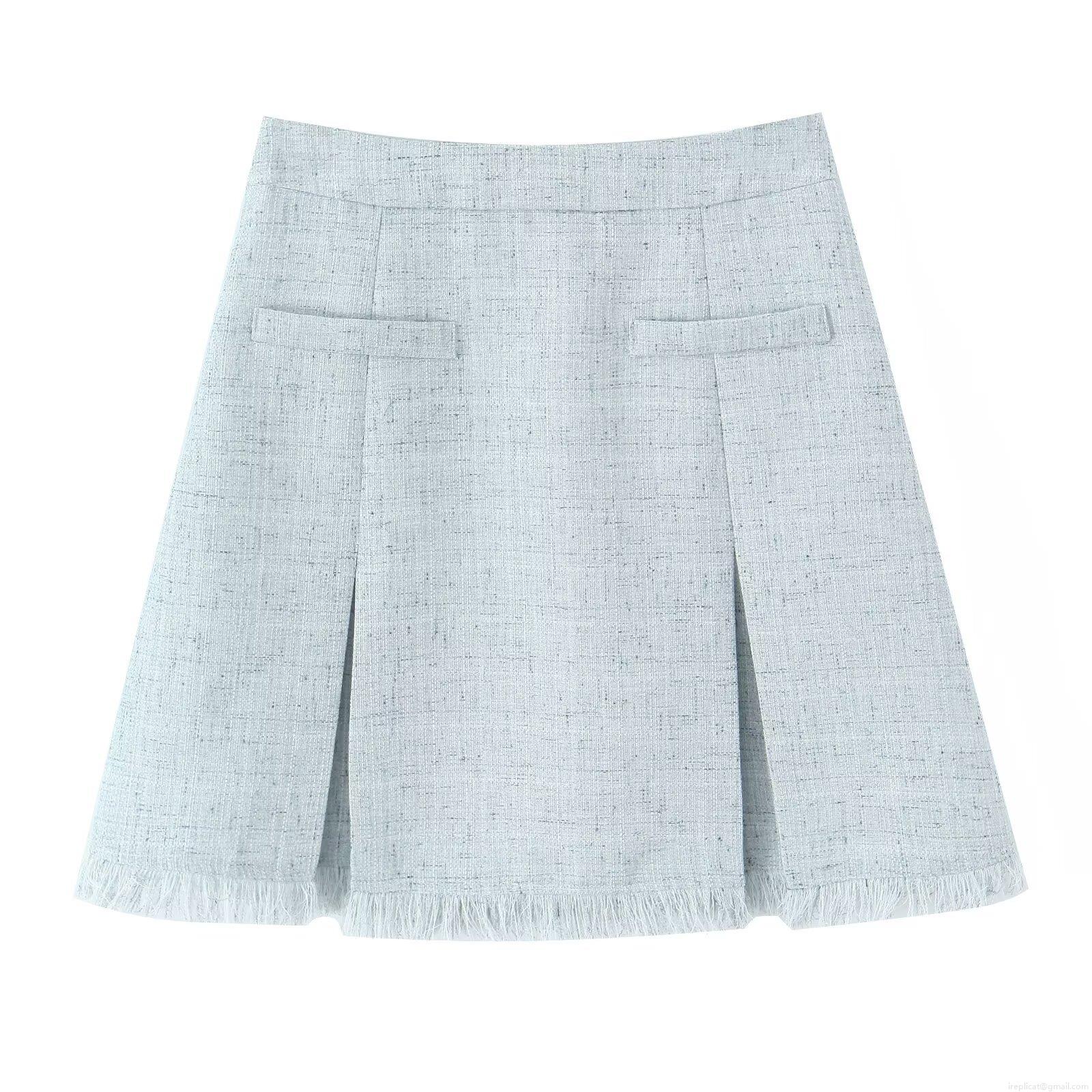 • Women's Elegant Tweed Two Piece Skirt Set V Neck Long Sleeve Short Jacket And Pleated A-Line Mini Skirt With Fringed Hem Chic Western Style Streetwear Outfit