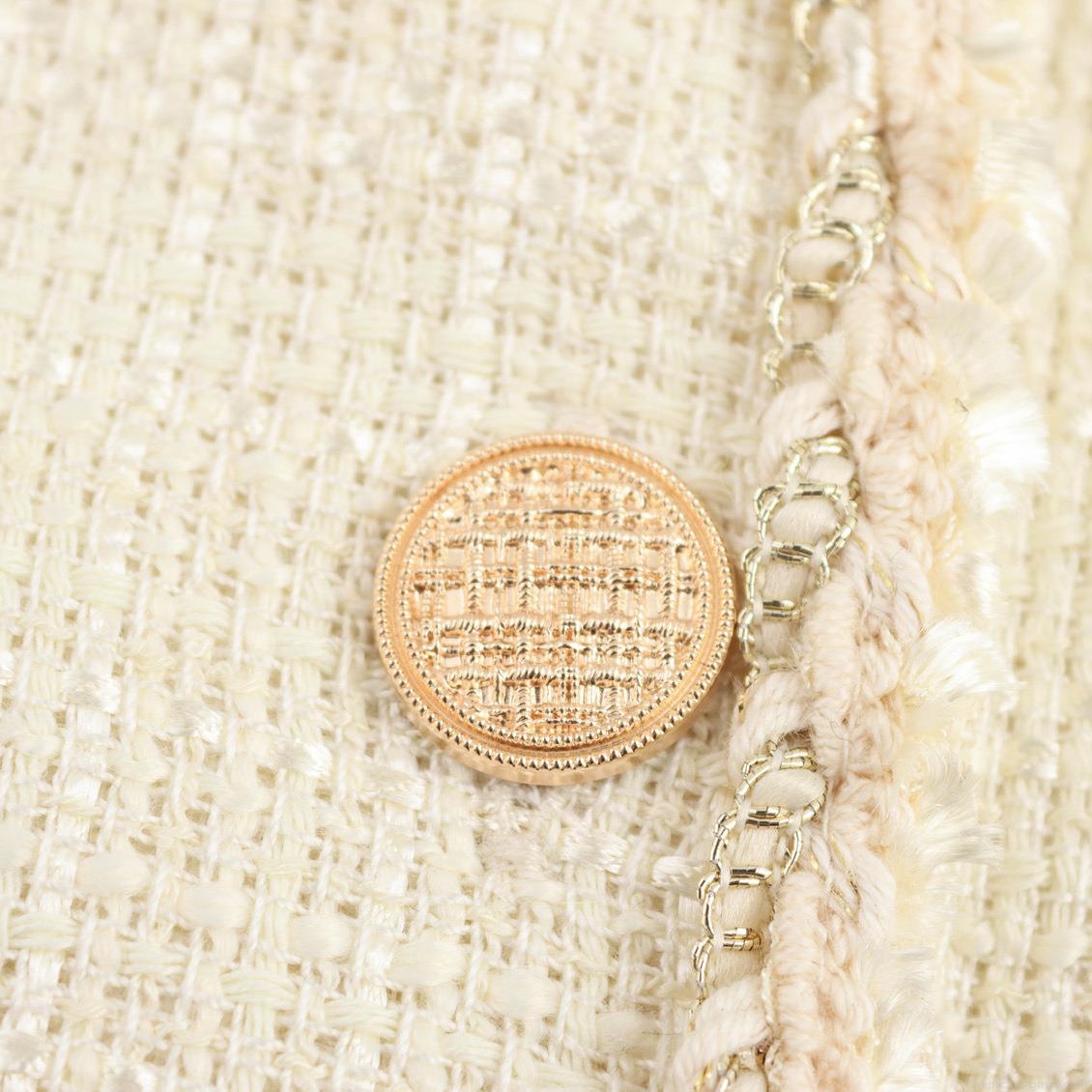 • Women's Elegant Tweed Two-Piece Set Short Sleeve Jacket And A-Line Mini Skirt With Gold Buttons Fringe Trim Little Fragrance Style Summer Casual Banquet Outfit For Women