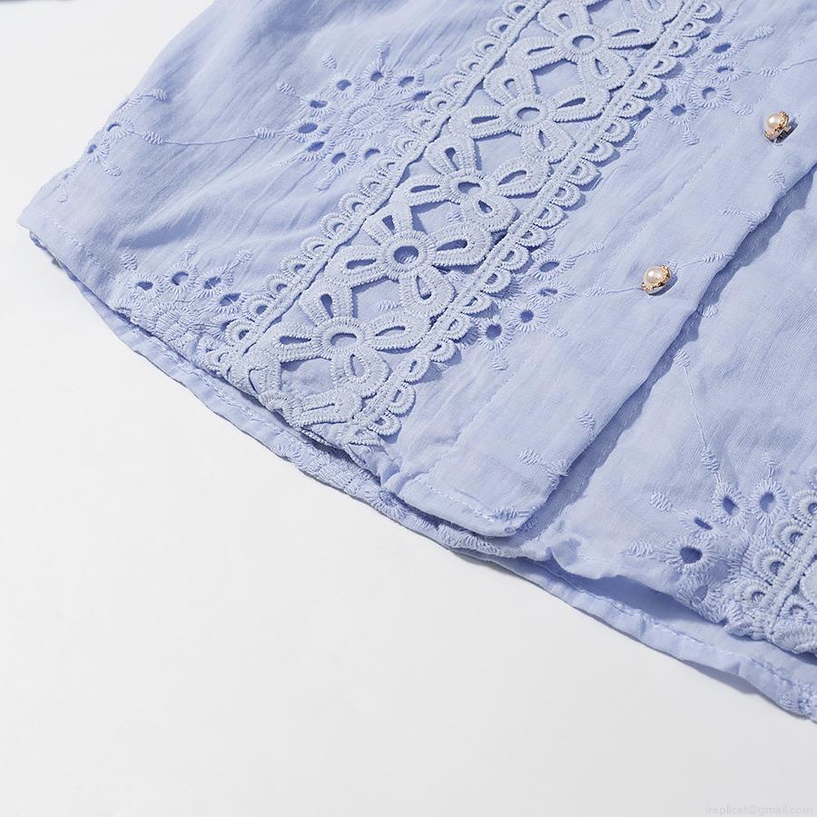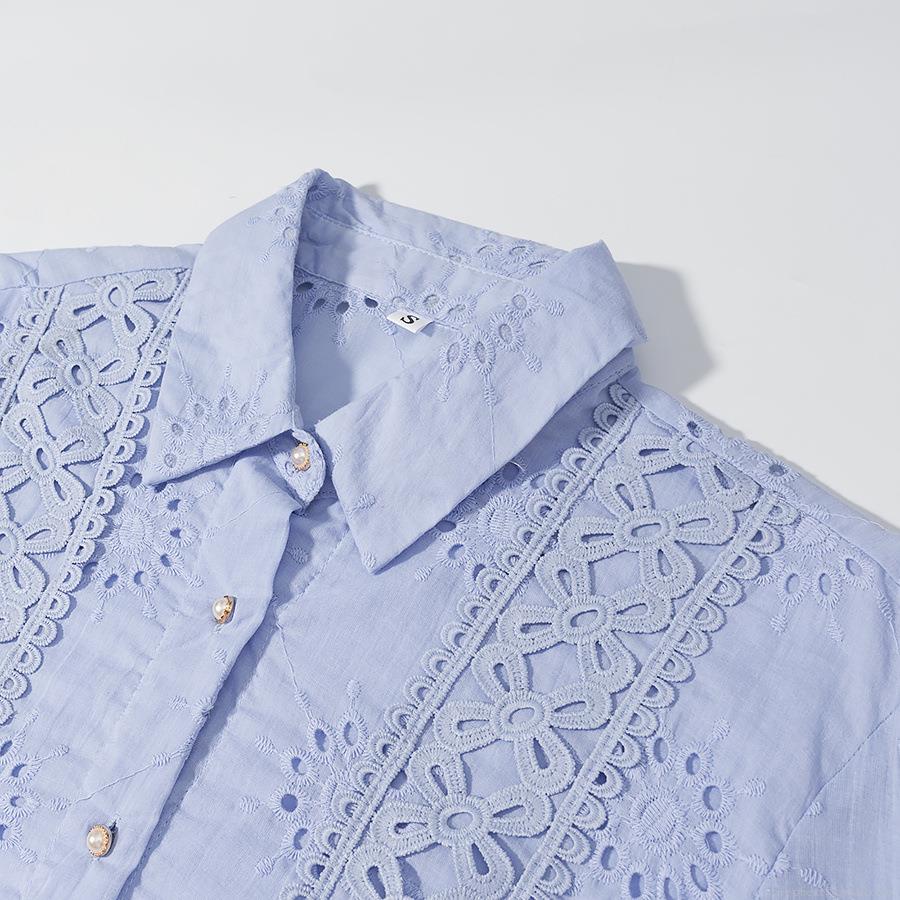 • Women's Elegant Two-Piece Skirt Set Floral Hollow Out Lace Embroidery Long Sleeve Button Down Shirt And Elastic Waist Maxi Skirt Set Sweet Casual Vacation Outfit