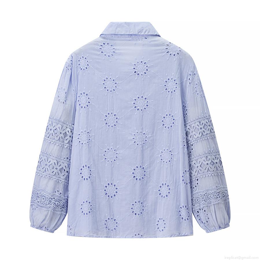 Women's Elegant Two-Piece Skirt Set Floral Hollow Out Lace Embroidery Long Sleeve Button Down Shirt And Elastic Waist Maxi Skirt Set Sweet Casual Vacation Outfit