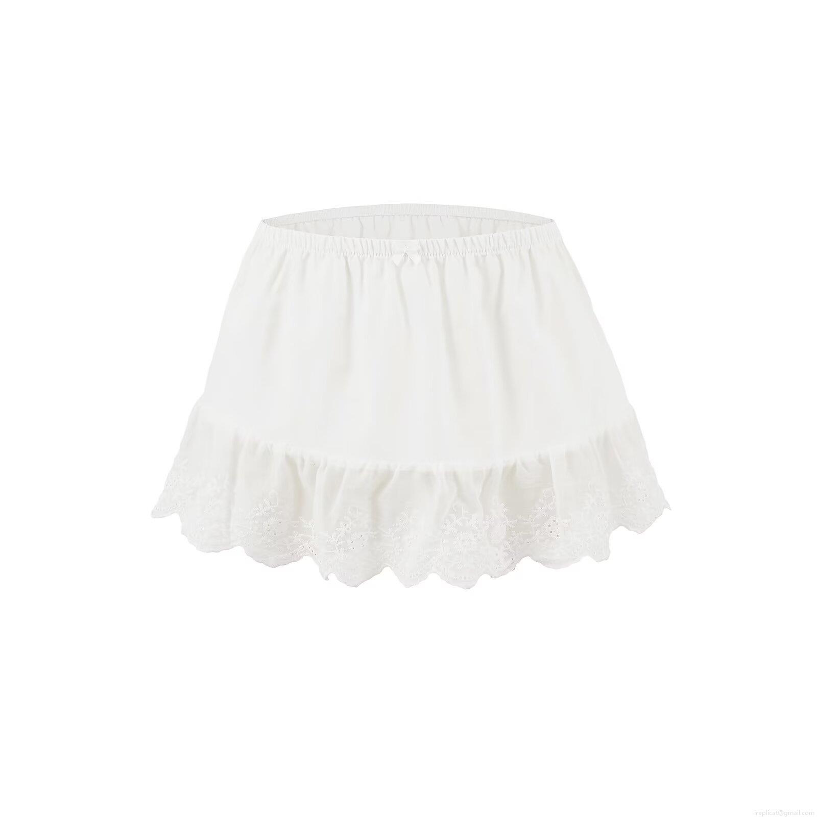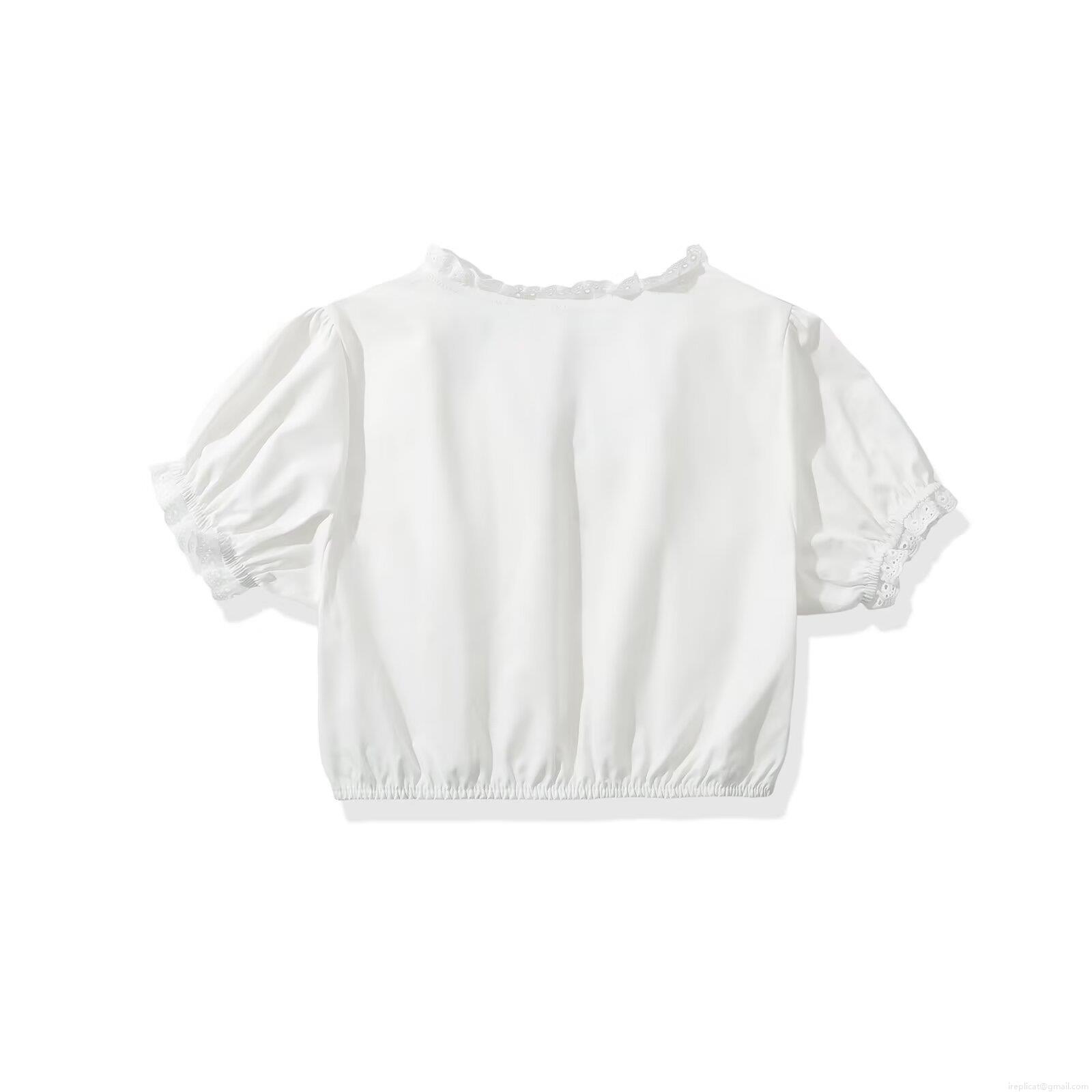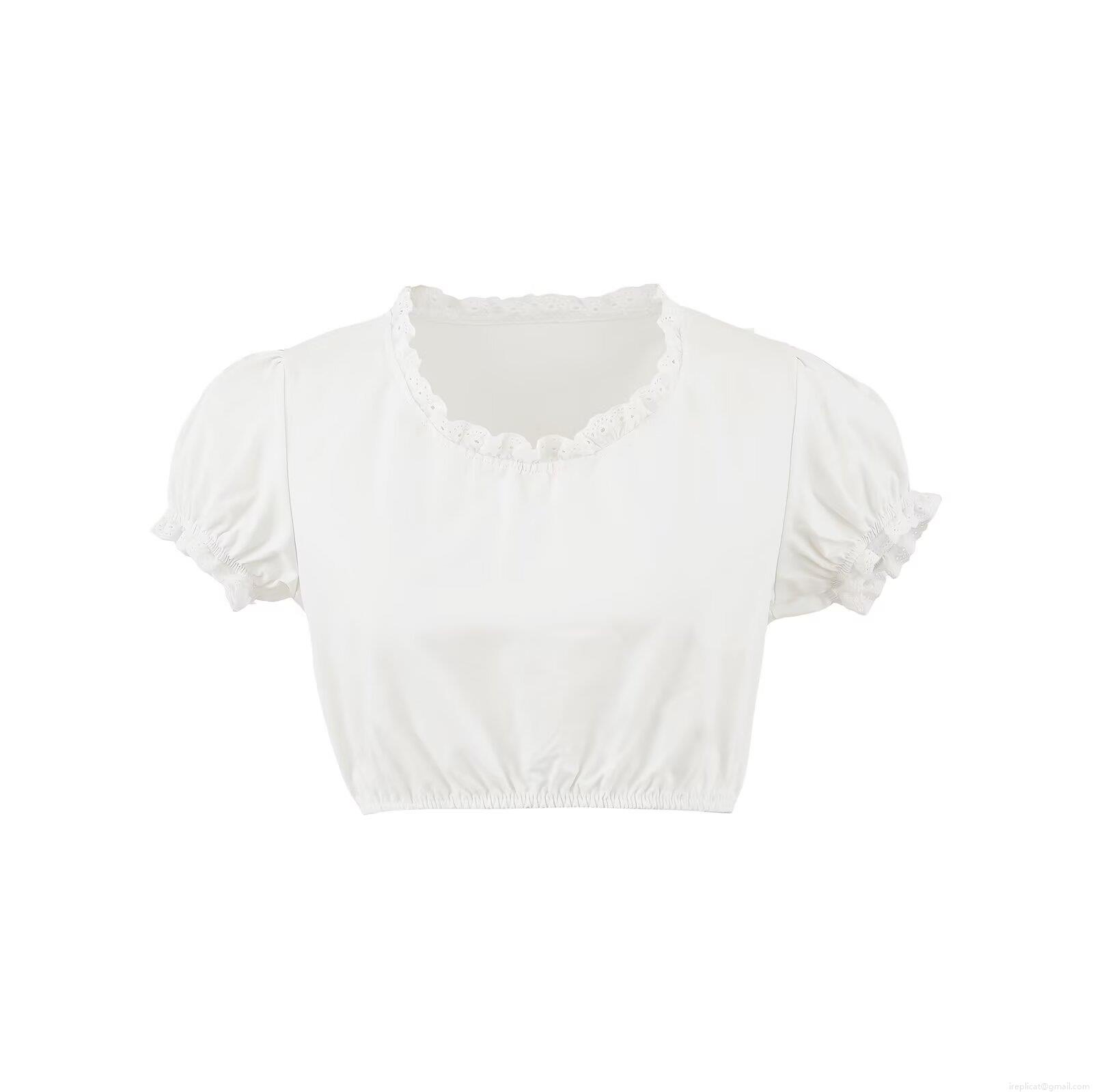 • Women's Elegant White Lace Trim Puff Sleeve Top And Mini Skirt Two Piece Set Summer Streetwear Slim Fit Crop Top With Ruffle Short Skirt Outfit For Ladies