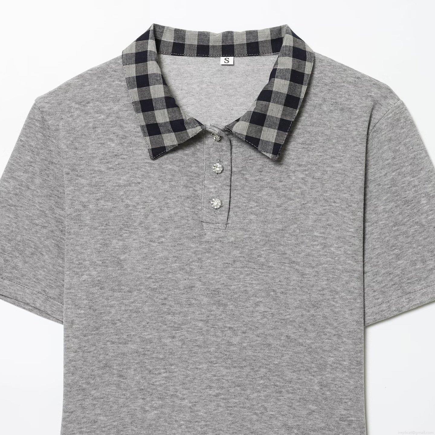 Women's Fashion Knitted 2-Piece Skirt Set Plaid Patchwork Polo Collar Short Sleeve Top And Drawstring Midi Skirt Casual Lounge Wear Outfit