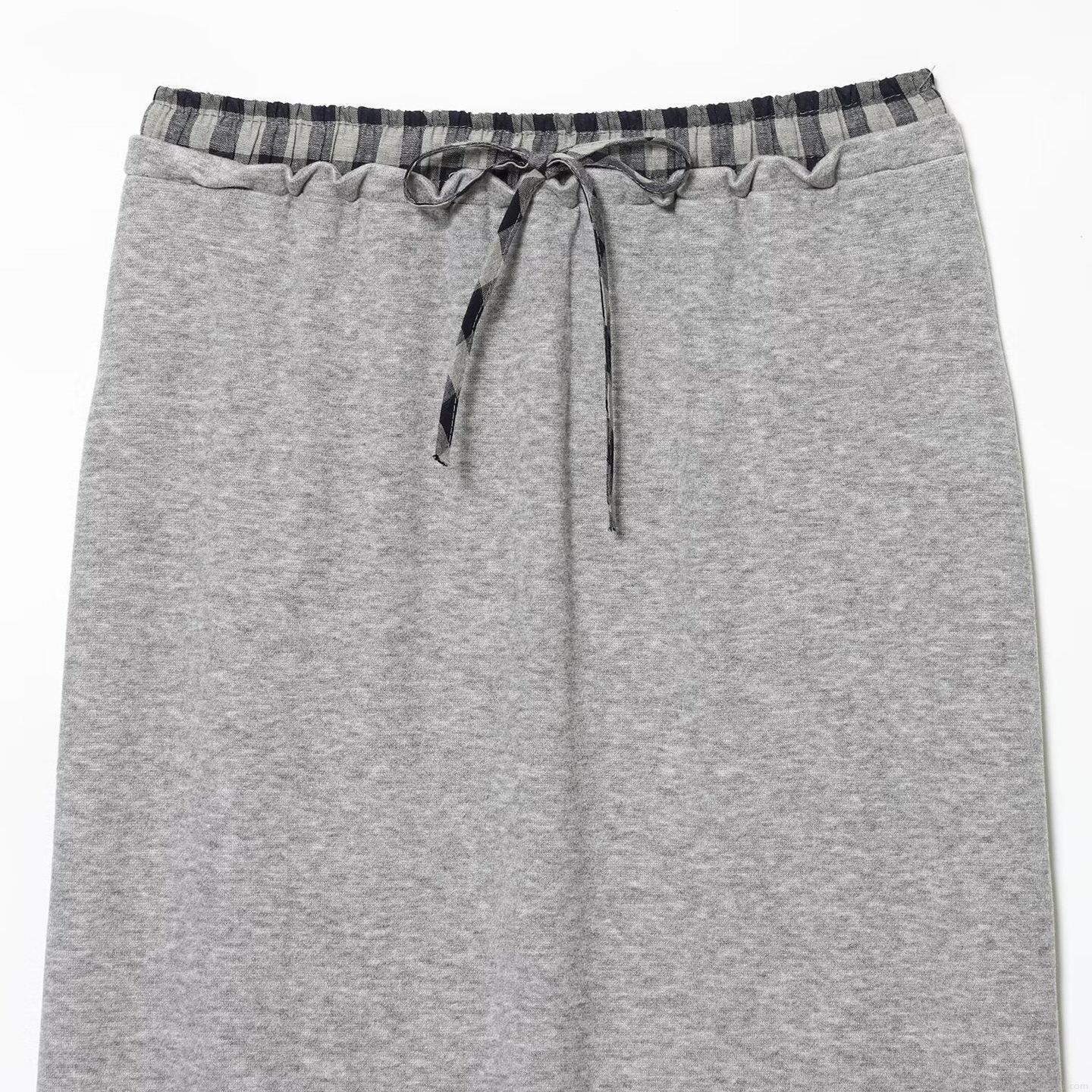 • Women's Fashion Knitted 2-Piece Skirt Set Plaid Patchwork Polo Collar Short Sleeve Top And Drawstring Midi Skirt Casual Lounge Wear Outfit