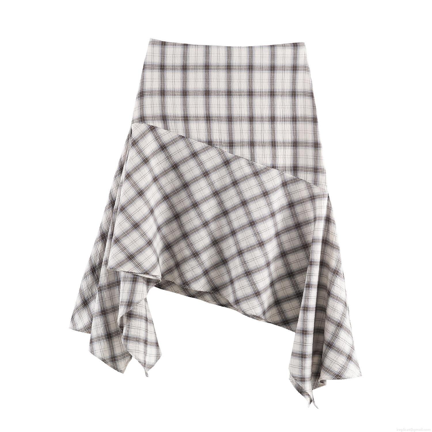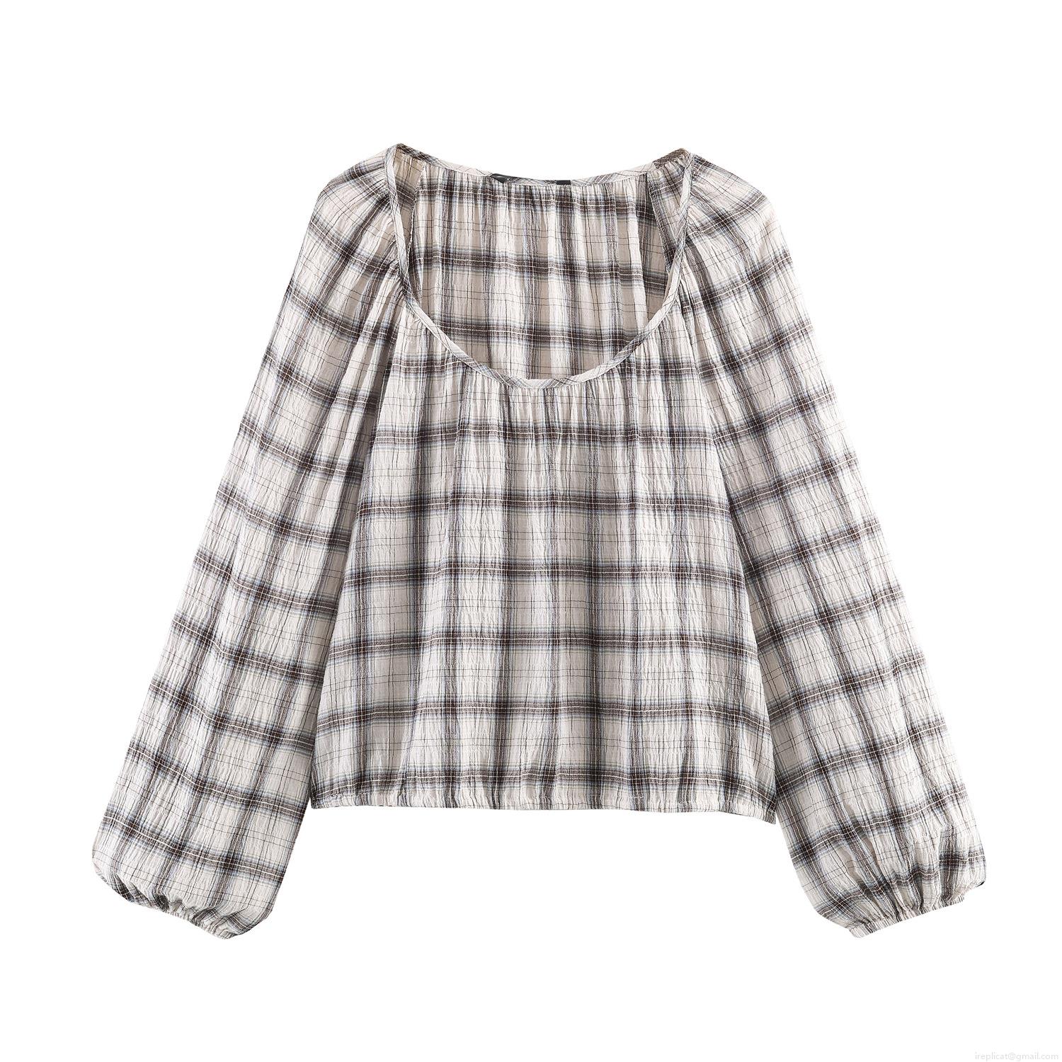 Checkered Pattern, Puff Sleeves, Square Collar, Scottish Plaid, Irregular Cut, Asymmetrical Pendulum