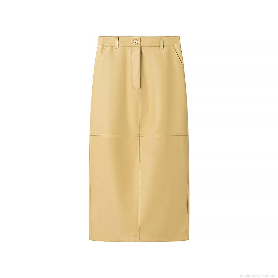 • Women's Fashion PU Leather Two Piece Set Long Sleeve Single Breasted Coat And High Waist Midi Skirt Solid Color Spring Autumn Streetwear Outfits