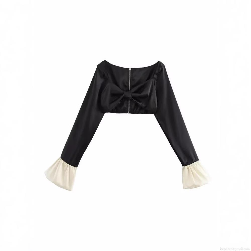 Splice, Bow Decoration, Ruffles, Color Blocking, Big Bow, Navel Exposed, Metal Zipper, Bubble Skirt